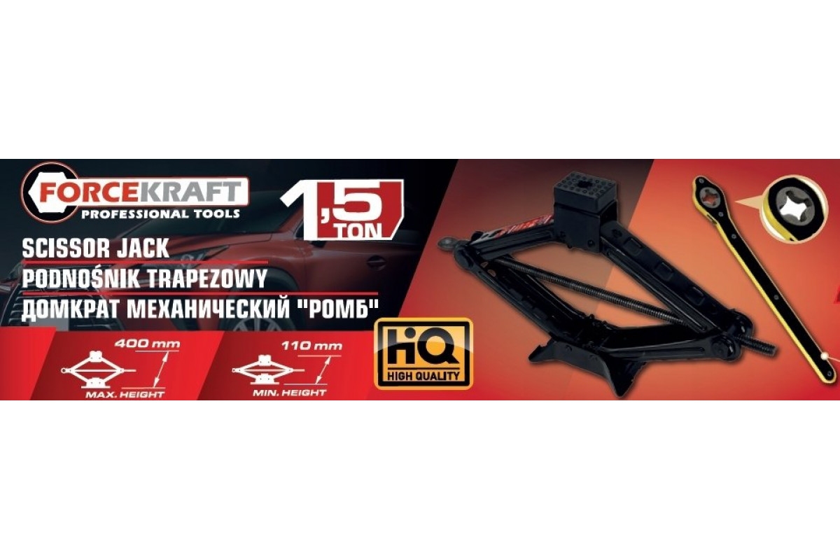 Lift trapezoidal z gumą 1,5t z kluczem grzechotką (h min 110mm, h max 400mm)