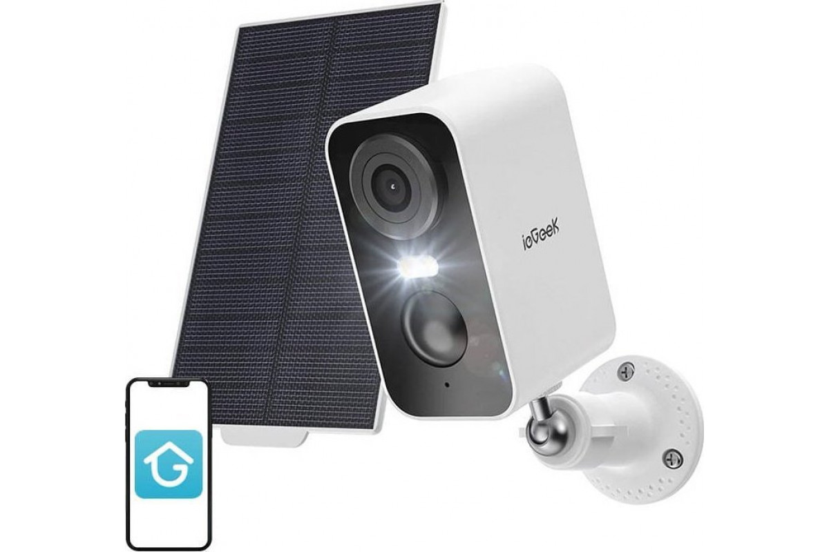 ieGeek Bezprzewodowa kamera zewnętrzna WiFi 3MP biała z panelem solarnym