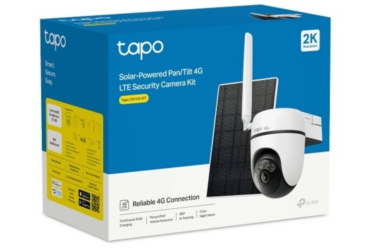 TP-Link Tapo C615G KIT zewnętrzna 4G LTE kamera, panel słoneczny (3MP, 2K, 1296p, IR, 4G LTE, micro SD card, IP65)