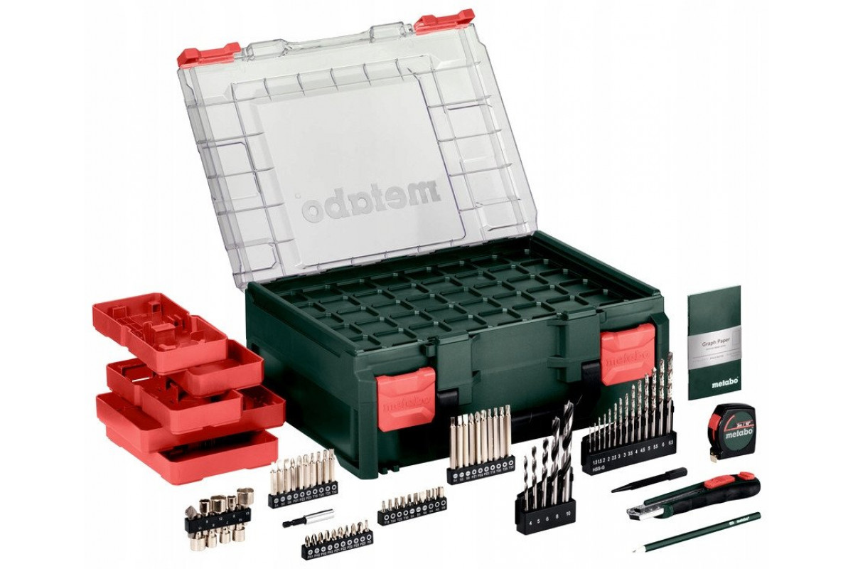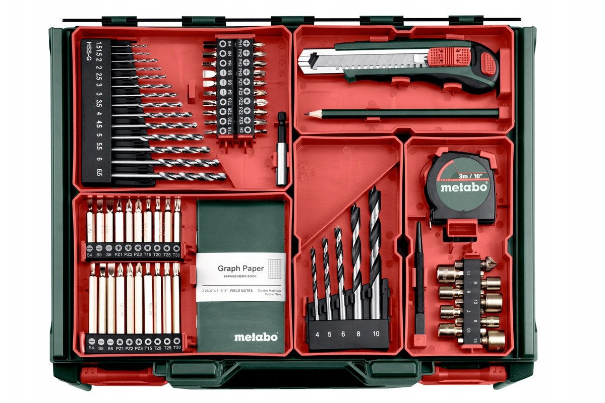 METABO.SB 18 L Mobile workshop + 2 Li-Ion batteries 18V/2.0 Ah with charger SC 30 + 74 elements