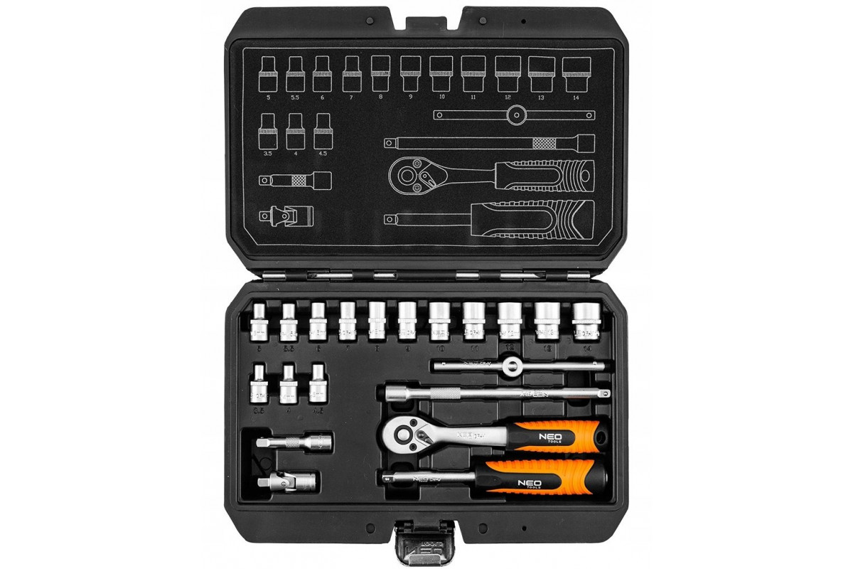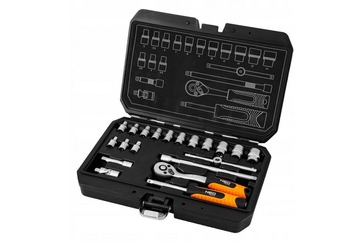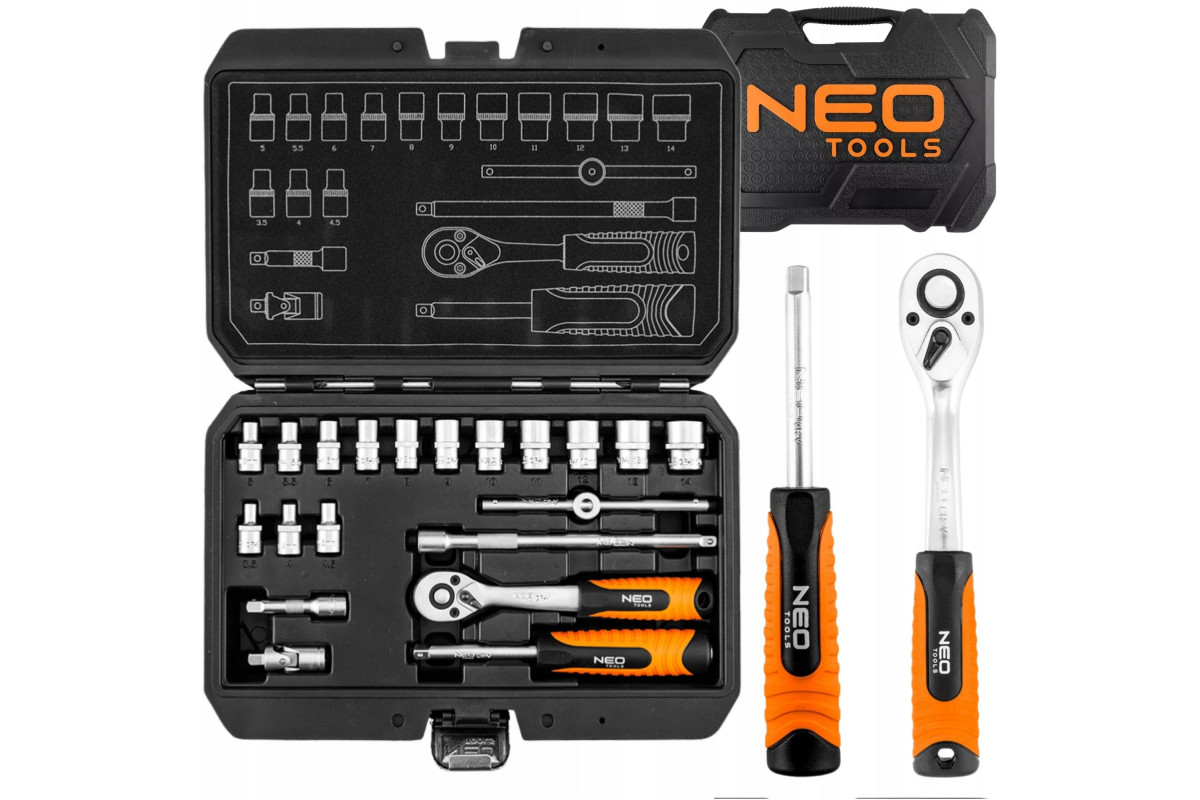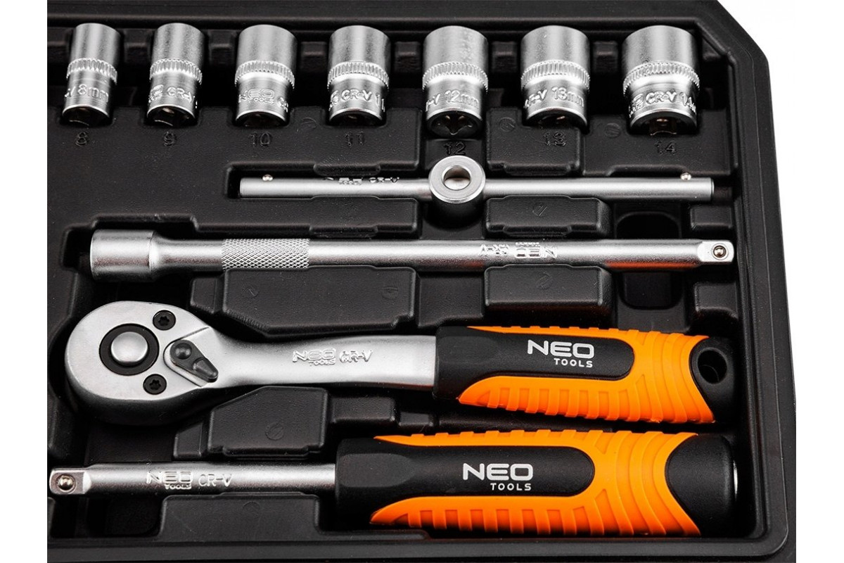 Neo Zestaw kluczy nasadowych 1/4", 20 szt., satynowy