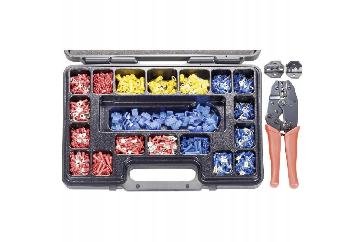 TOOLCRAFT PZ-504 820927 Crimptænger-sæt 1004 dele Koaksial-stikforbindelse, Uisolerede kabelsko, Isolerede kabelsko RG6, RG58, RG59, RG62