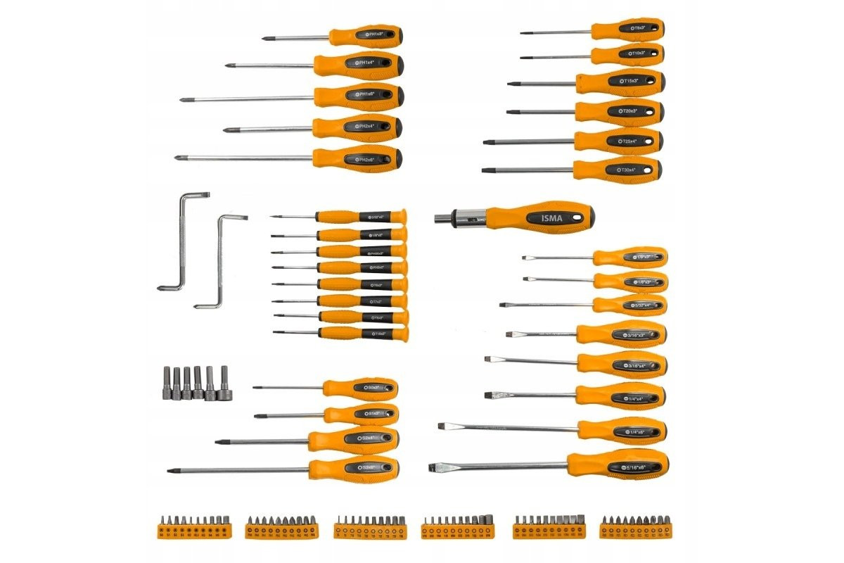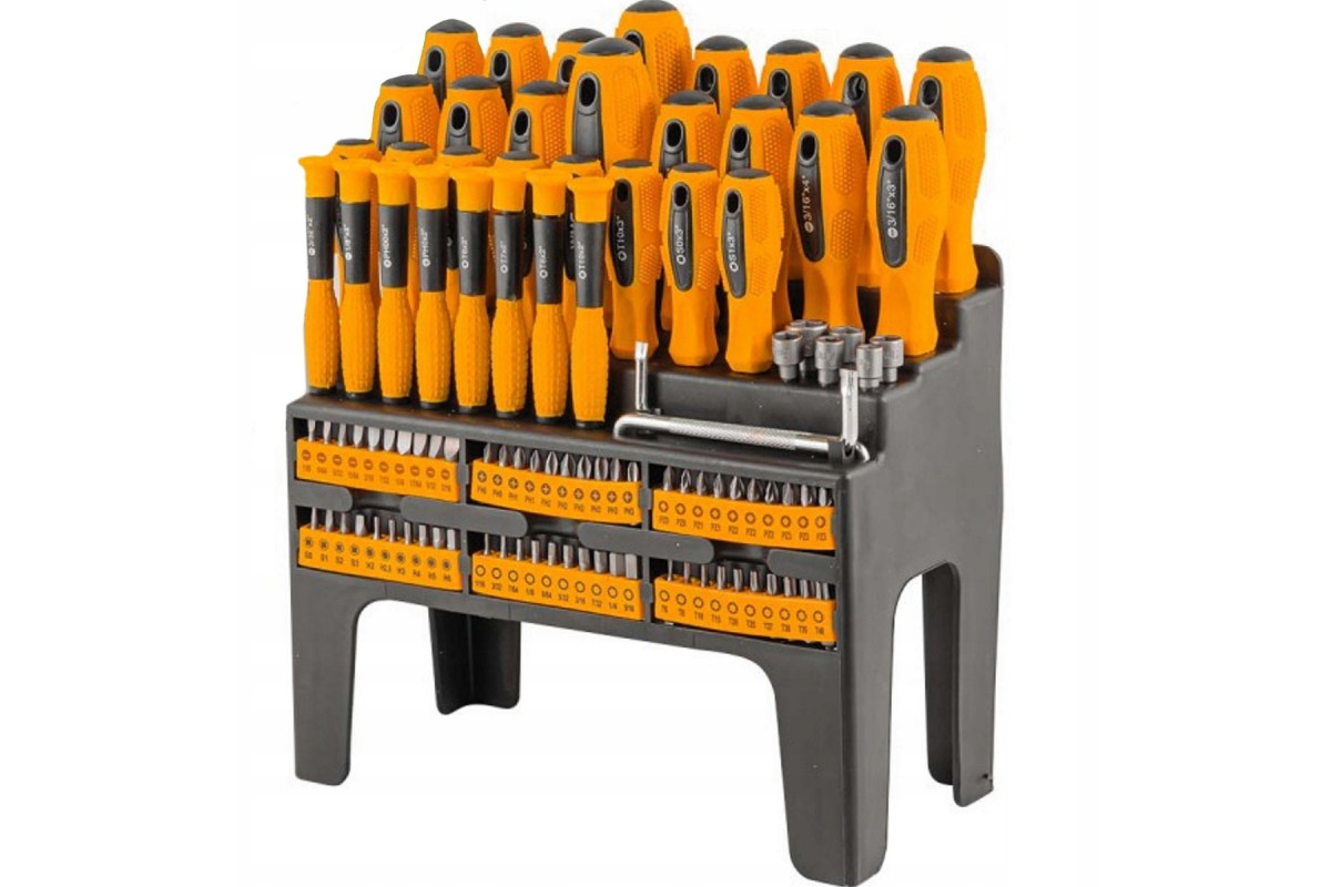 Zestaw wkrętaków i bitów w plastikowym stojaku 100el.