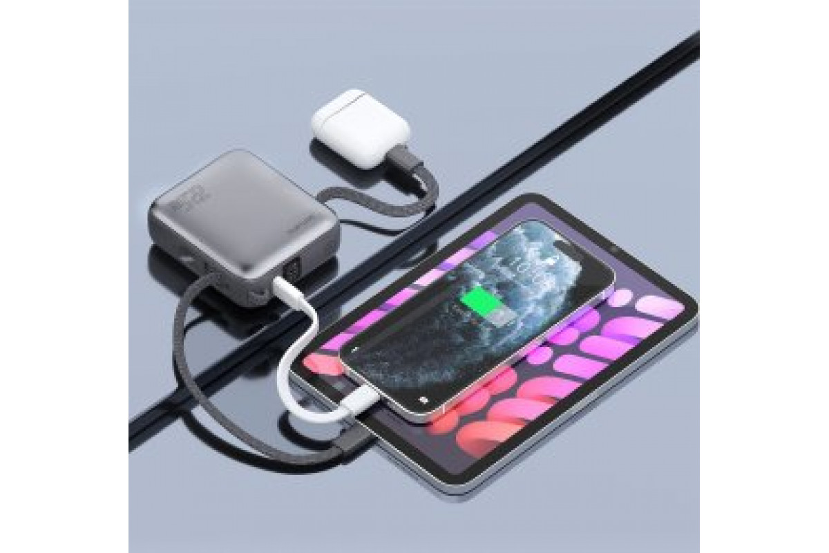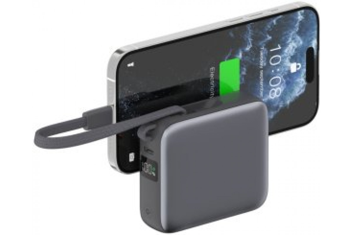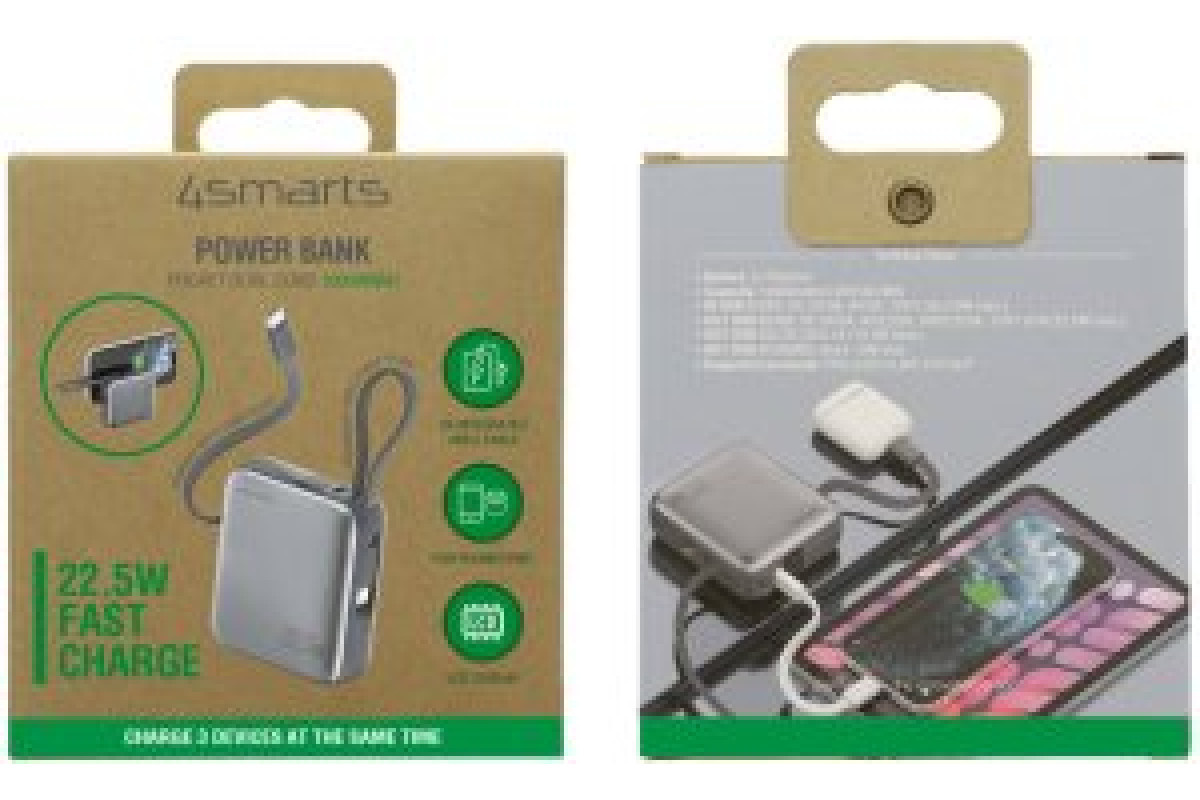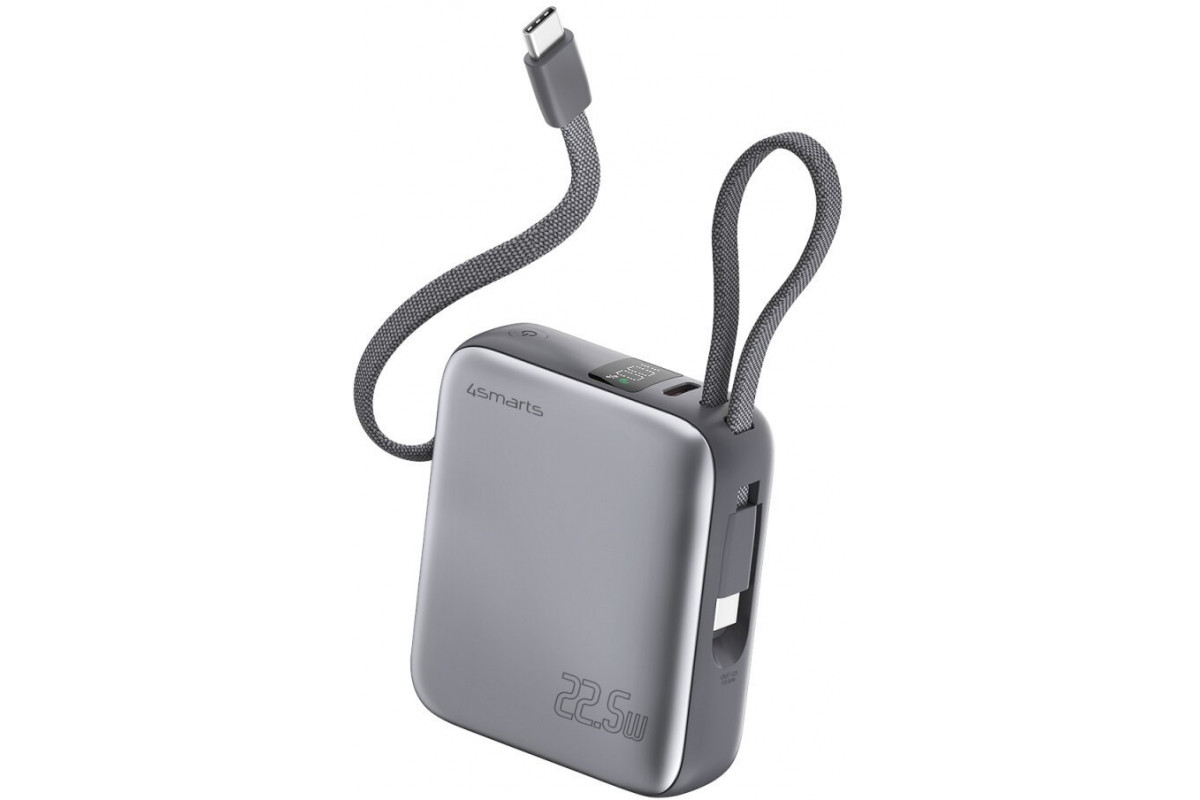 4smarts Pocket Dual Cord 10000mAh 22.5W with a built-in kablem USB-C 15cm gray