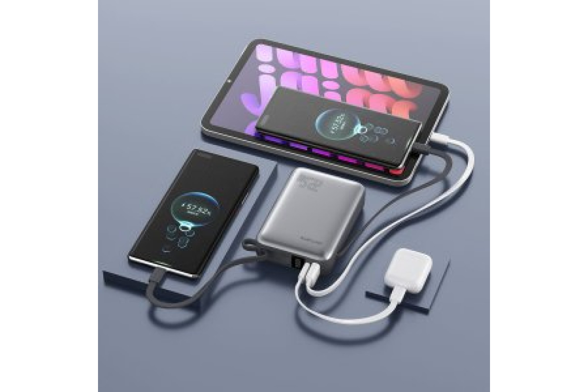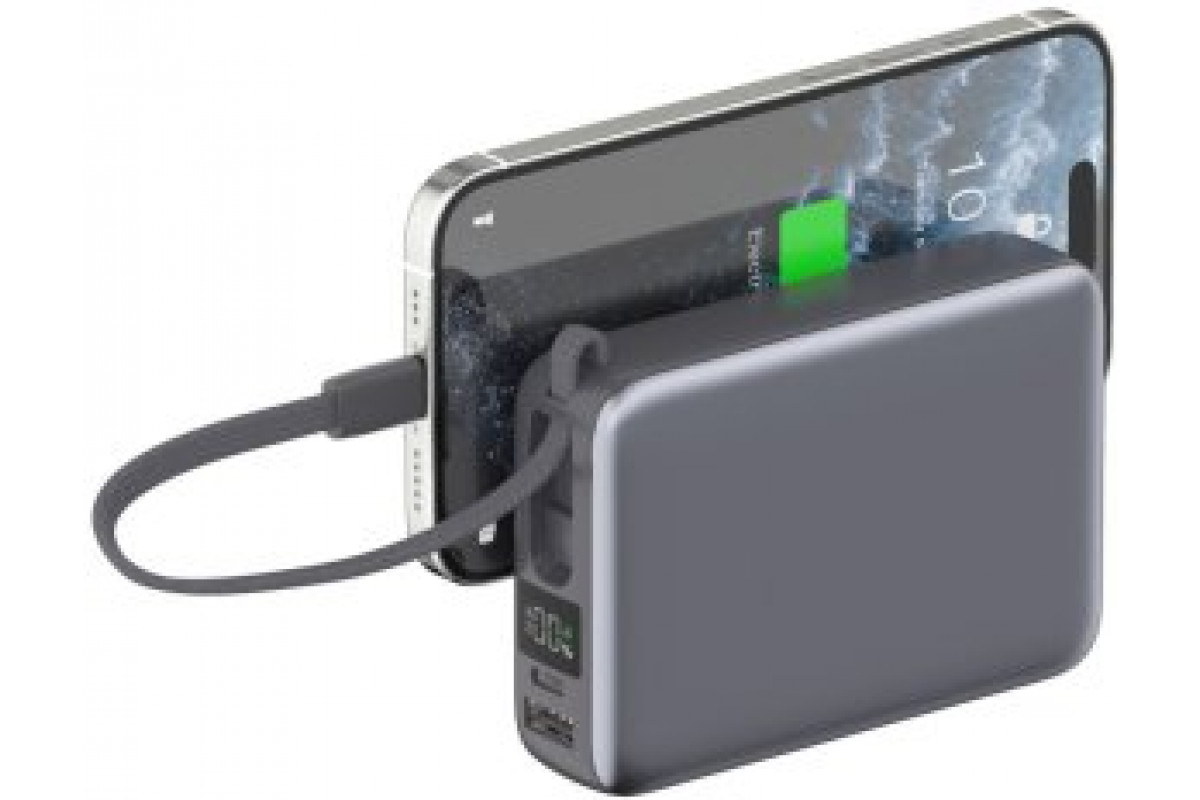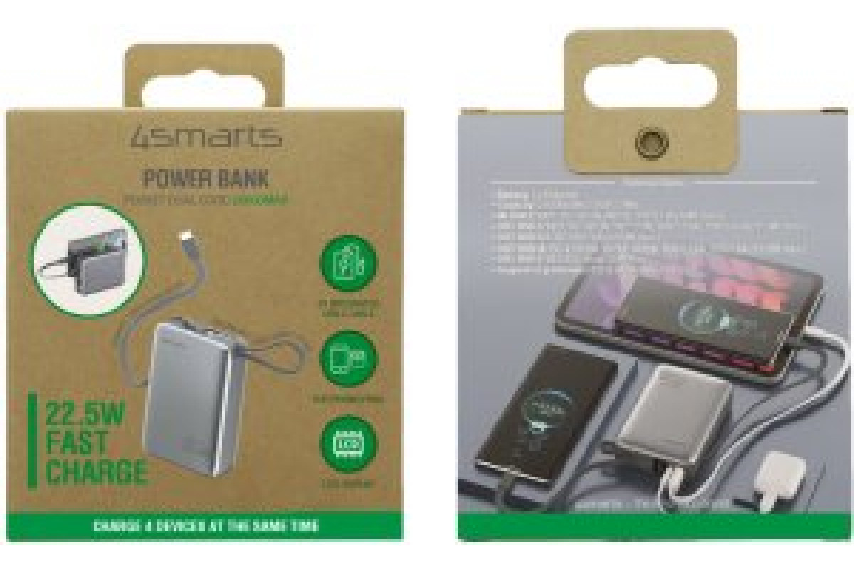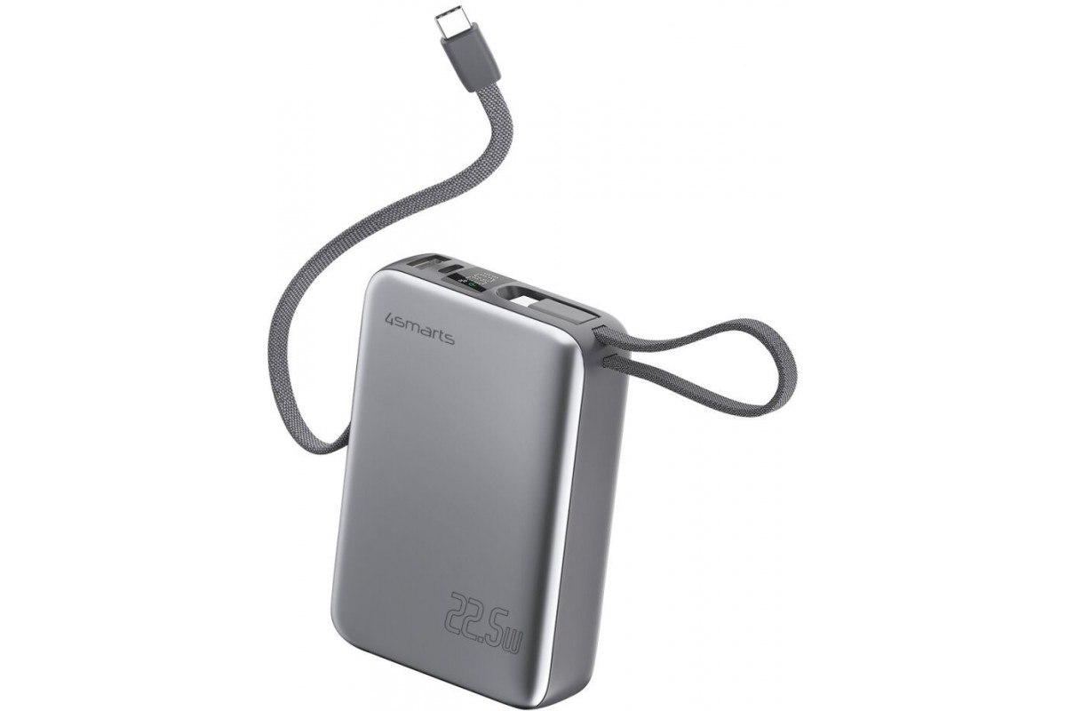 4smarts Pocket Dual Cord 20000mAh 22.5W with a built-in kablem USB-C 15cm gray