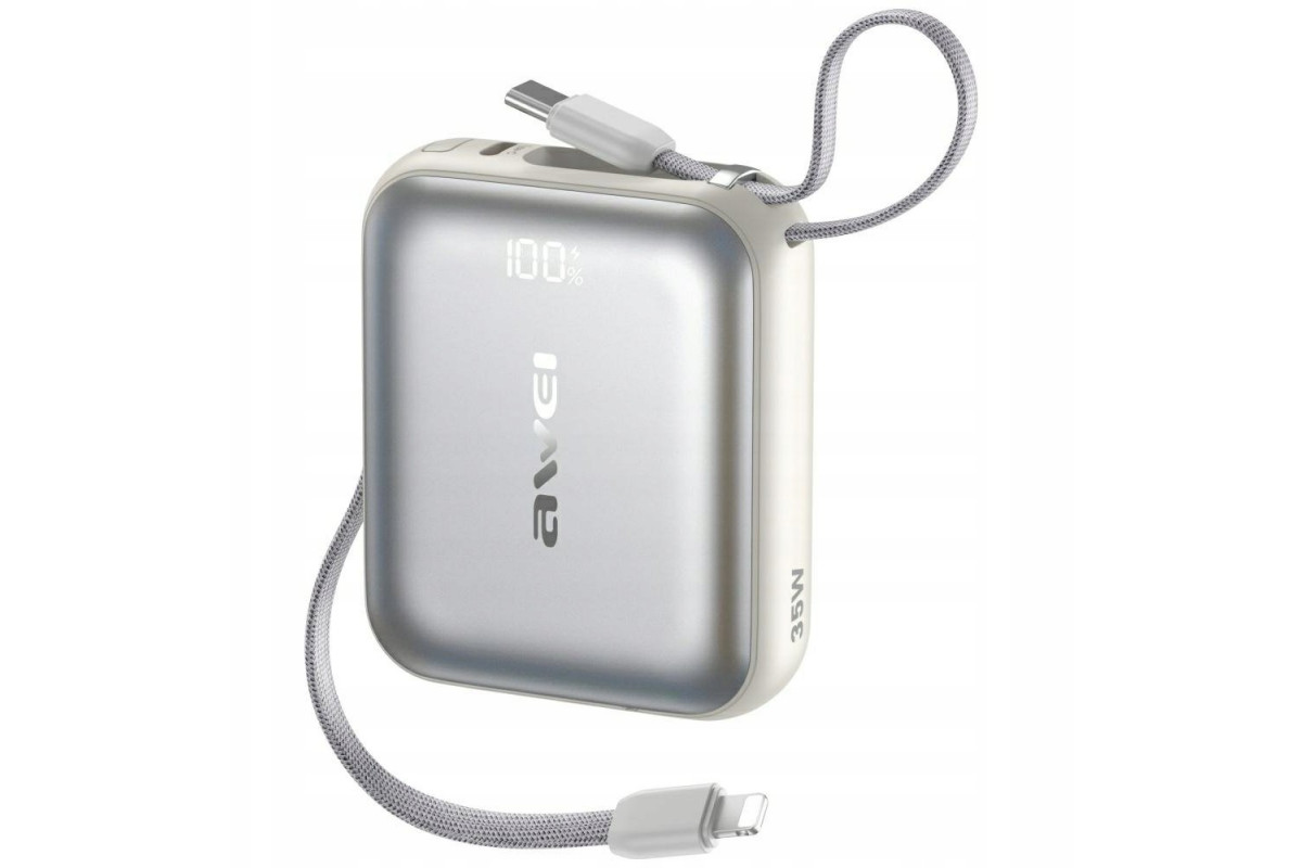 Awei AS-181 10000mAh 35W USB-C + kable Lightning / USB-C silver