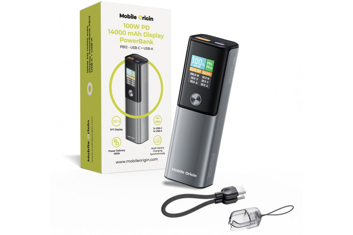 Mobile Origin Mobile Origin 100W PD 14000mAh Display PowerBank PB12 - USB-C + USB-A