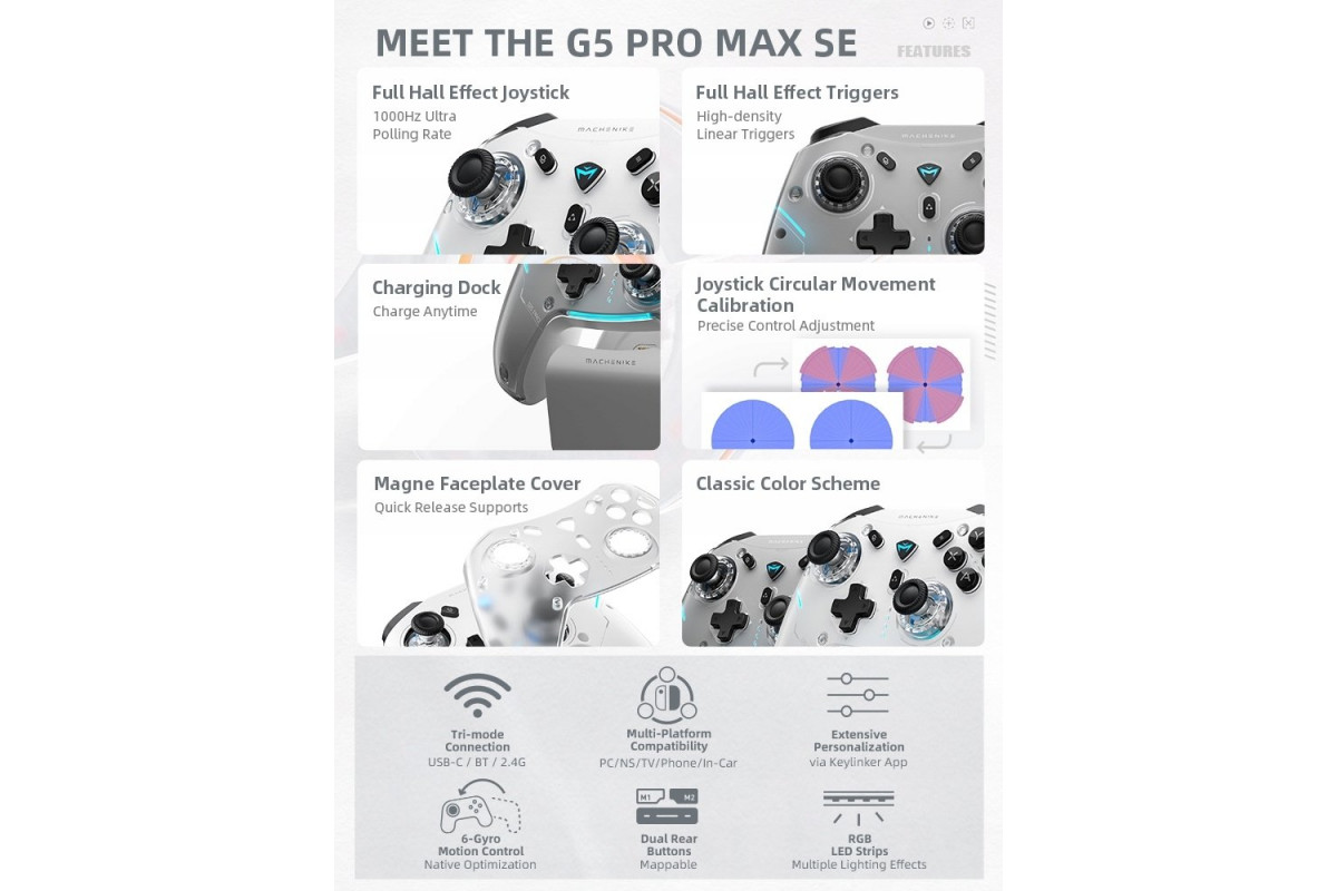 Pad Kontroler do gier Machenike G5Pro Max bezwire ze stacją ładującą - szary