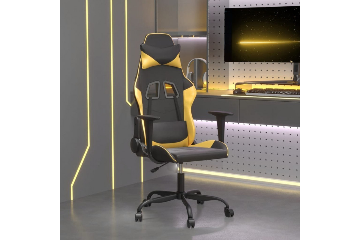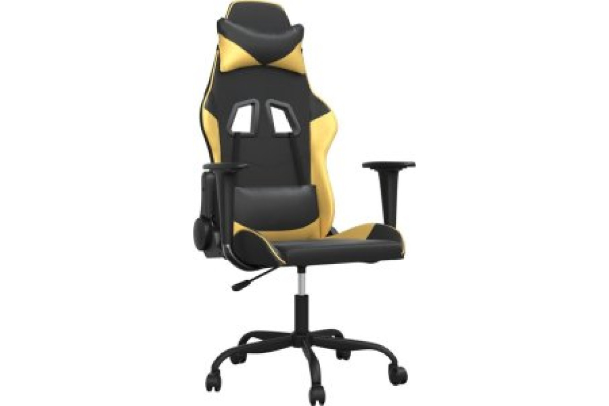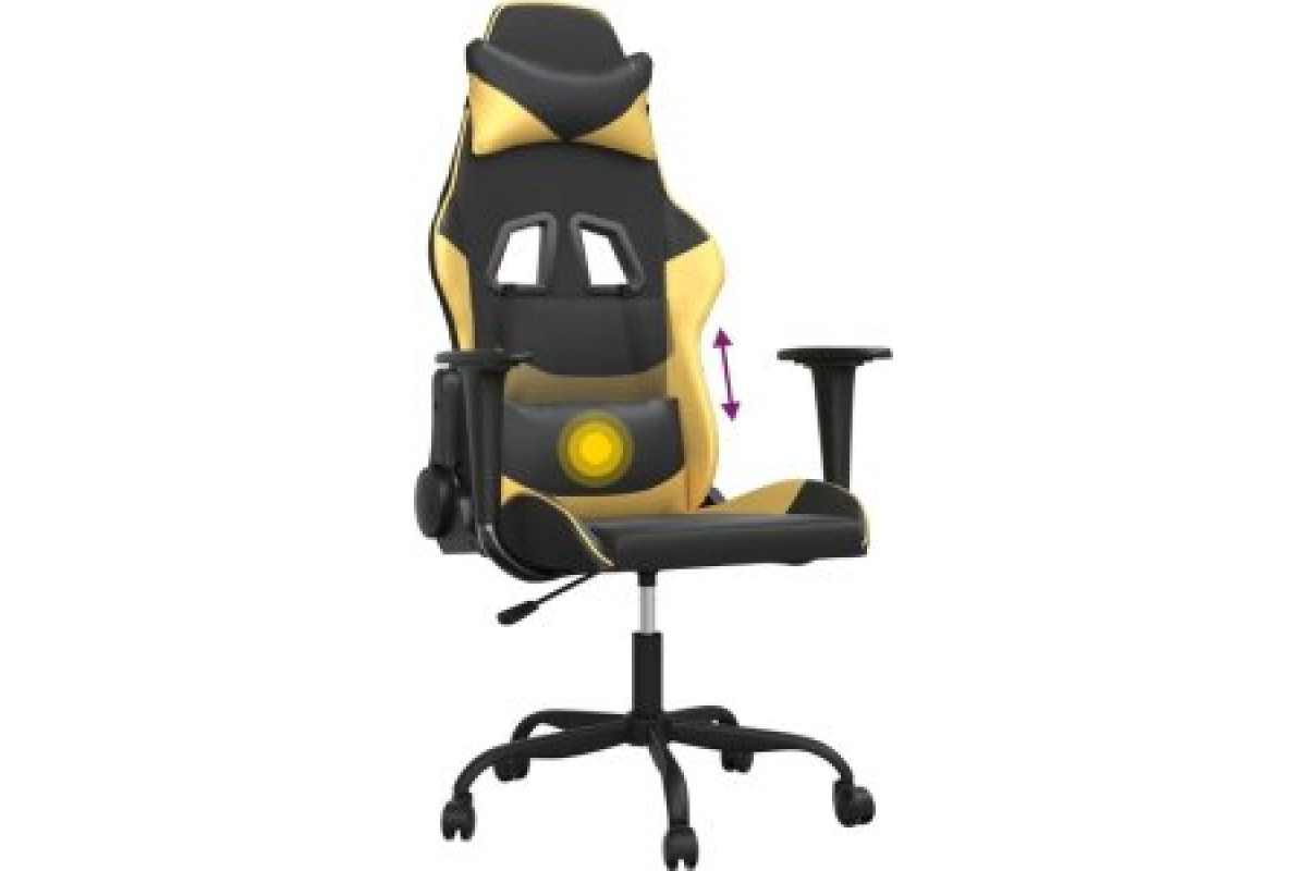 vidaXL Masujący fotel Gaming, black-złoty, sztuczna skóra