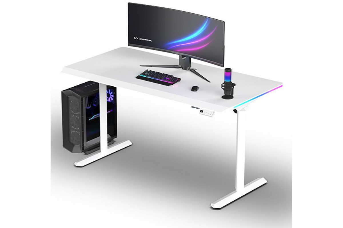 Gaming galds Ultradesk Gaming galds dla gracza QUEST, 140x70cm, 72-120cm, biały-biały