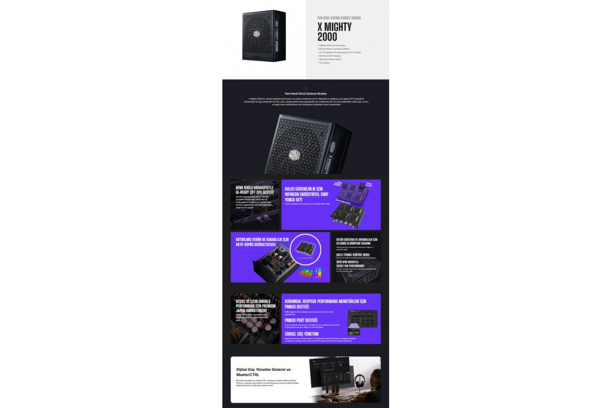 Cooler Master zdroj X Mighty 2000W, 120 mm, W pełni modularny, 80 Plus Platinum, ATX 3.1