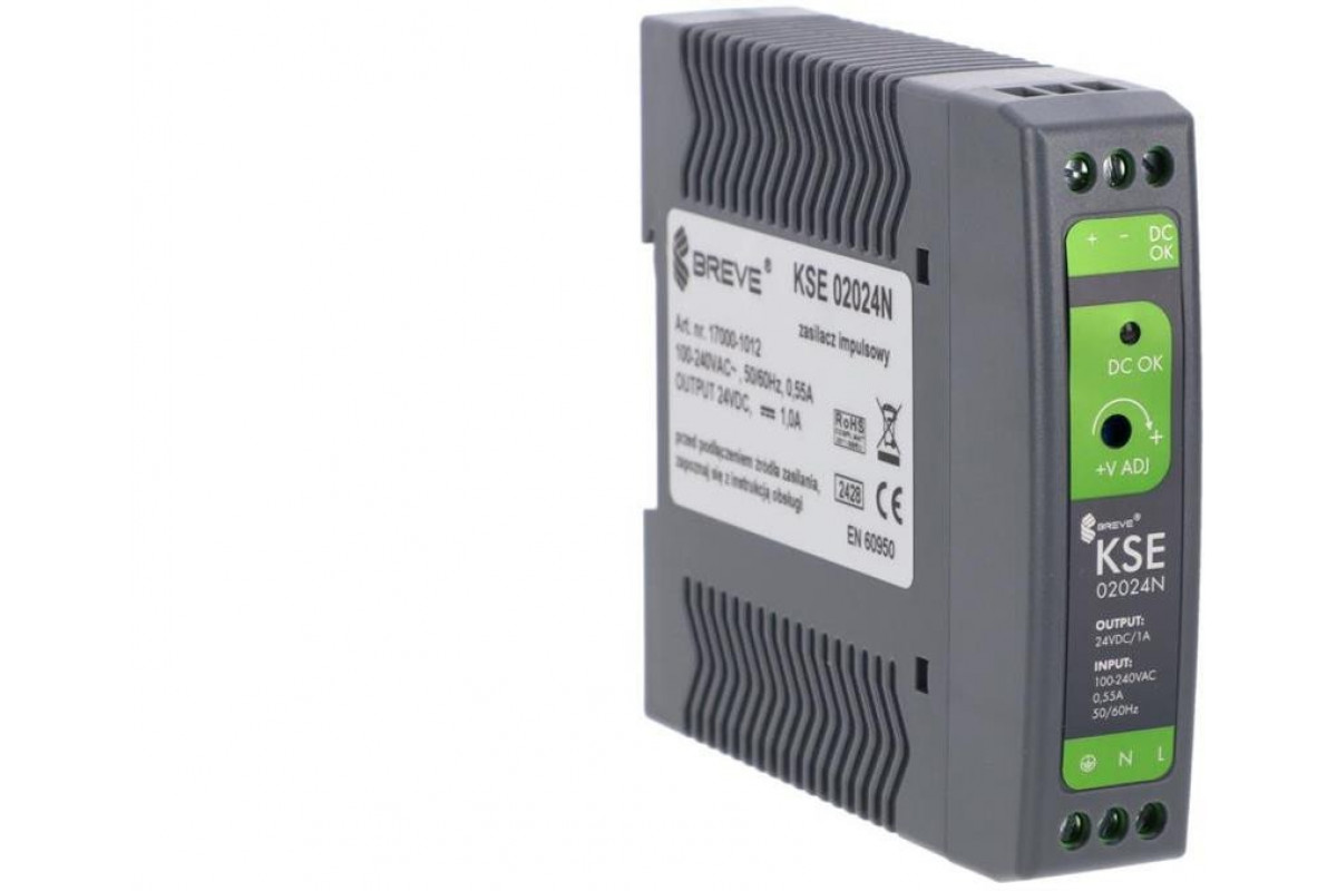 impulsowy KSE 02024P 230/ 24VDC 1A 24W na szynę DIN, Uzas: 85-264VACVAC, Ta70, 17000-1012