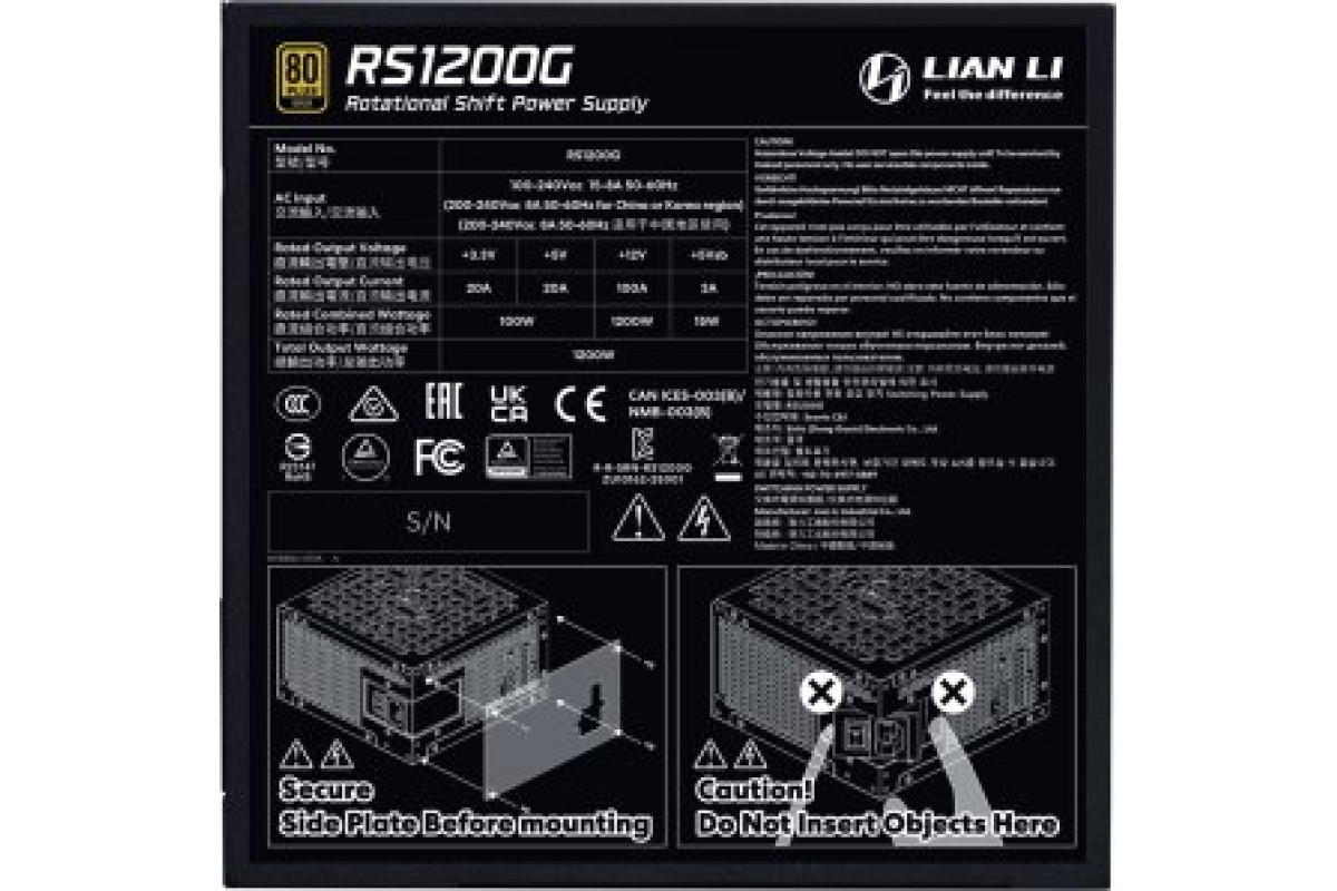 Lian Li RS Series 80 PLUS Gold zasilacz ATX 3.1 modular - 1.200 Watt z RS Hub czarny