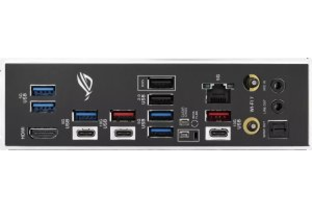 HDMI x1 Poga BIOS Flashback x1 Poga Clear CMOS x1 RJ-45 x1 S/PDIF Optiskais x1 USB 2.0 x2 USB 3.2 Gen 1 (3.0/3.1 Gen 1) x5 USB 3.2 Gen 2 (3.1 Gen 2) x2 USB-C 3.2 Gen 1 (3.0/3.1 Gen 1) x1 USB-C 3.2 Gen 2 (3.1 Gen 2) x2 Matesplates savienotājs anteny WiFi x2 Matesplates savienotājs audio x2