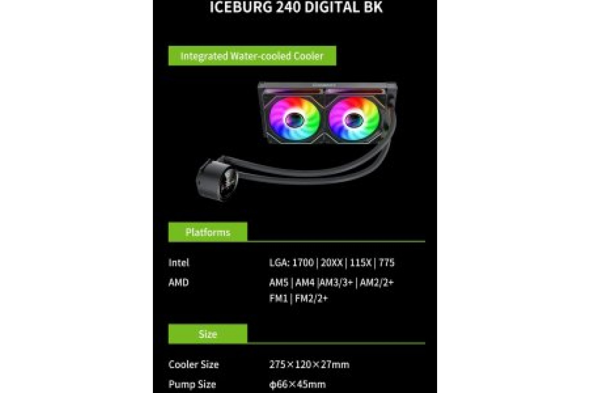 GameMax Gamemax CPU Liquid Cooler | ICEBURG 240 DIGITAL BK | Intel, AMD
