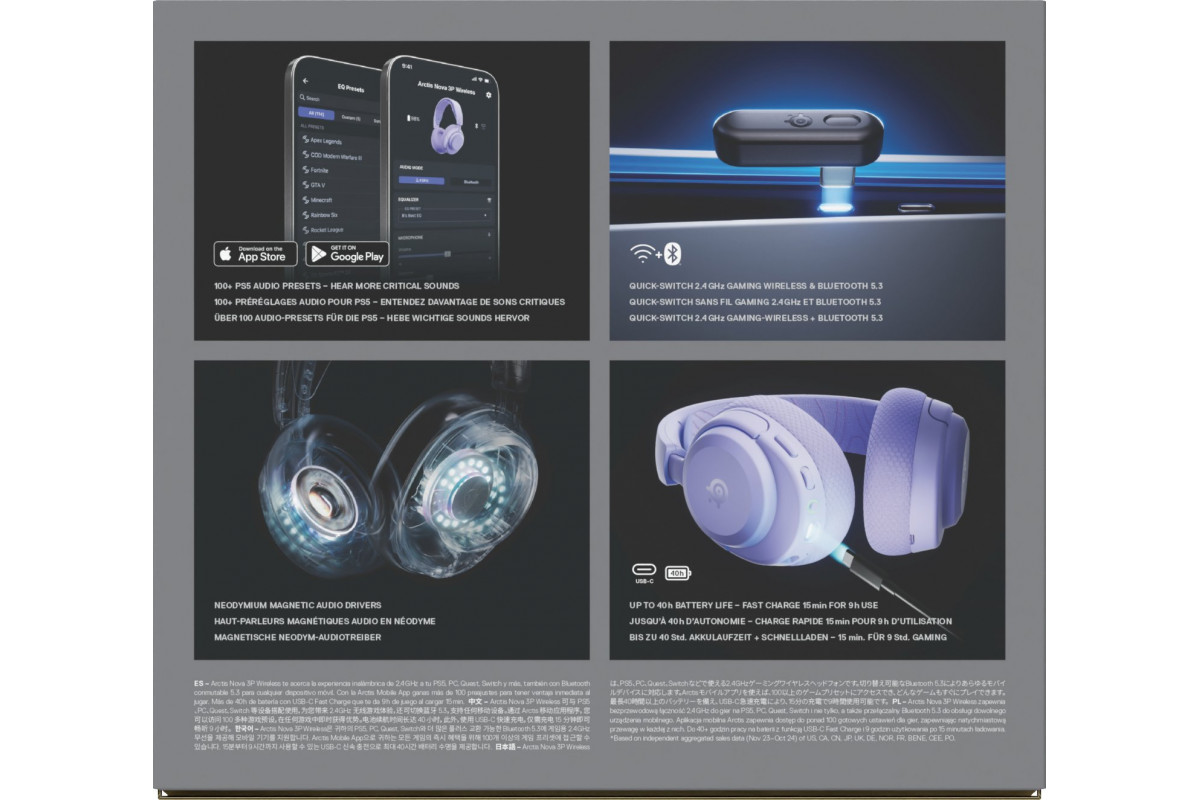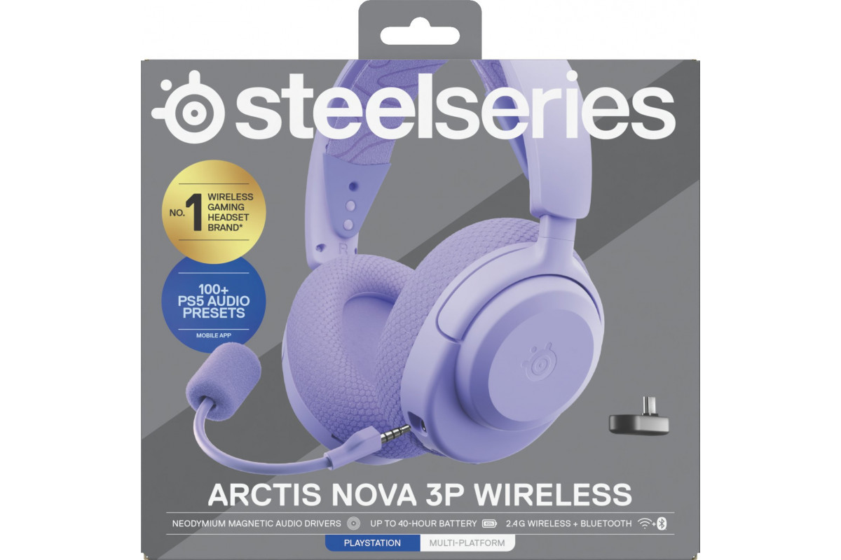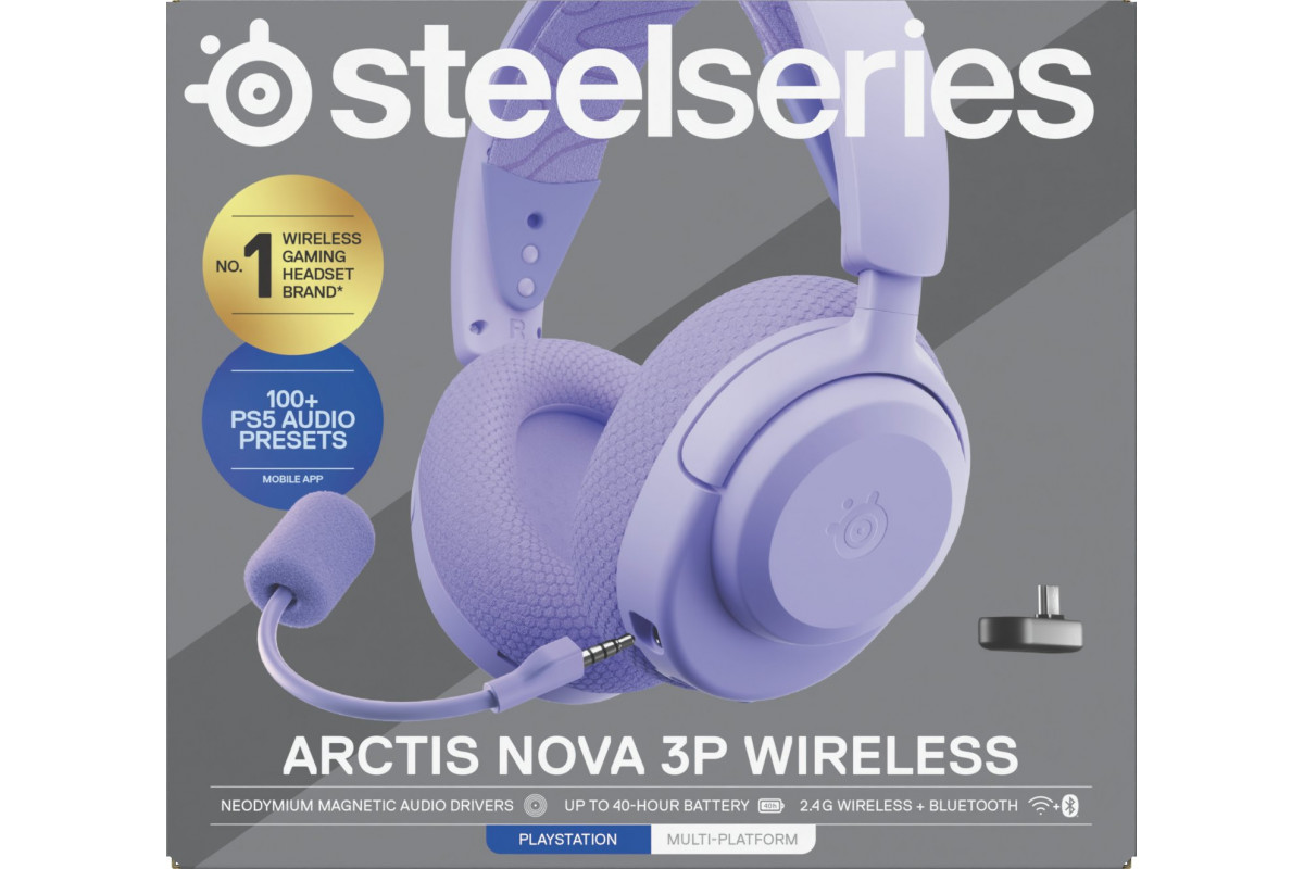 SteelSeries Ausinės Žaidimams | Arctis Nova 3PW | Bluetooth | Over-Ear | Mikrofonas | Noise canceling | Belaidės | Lavender