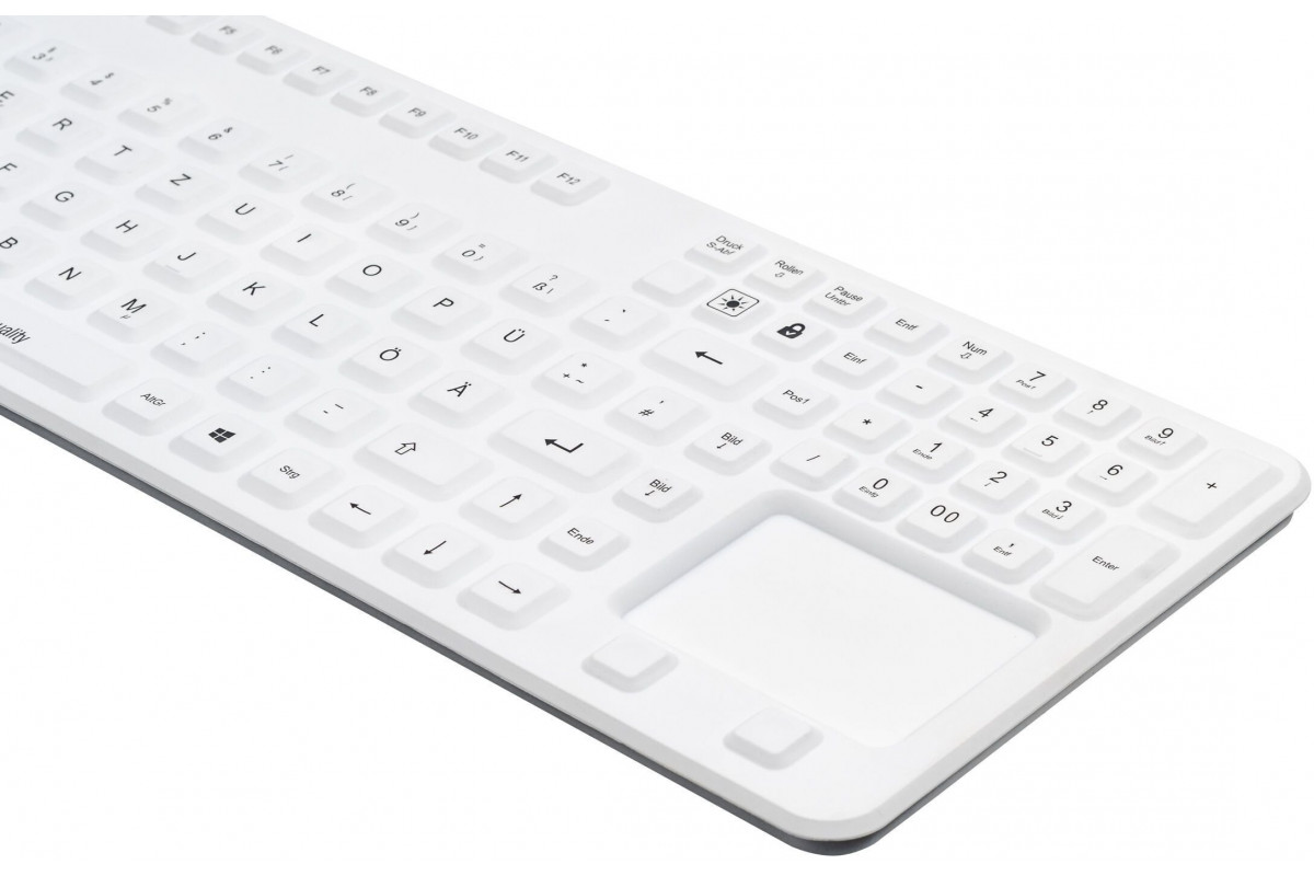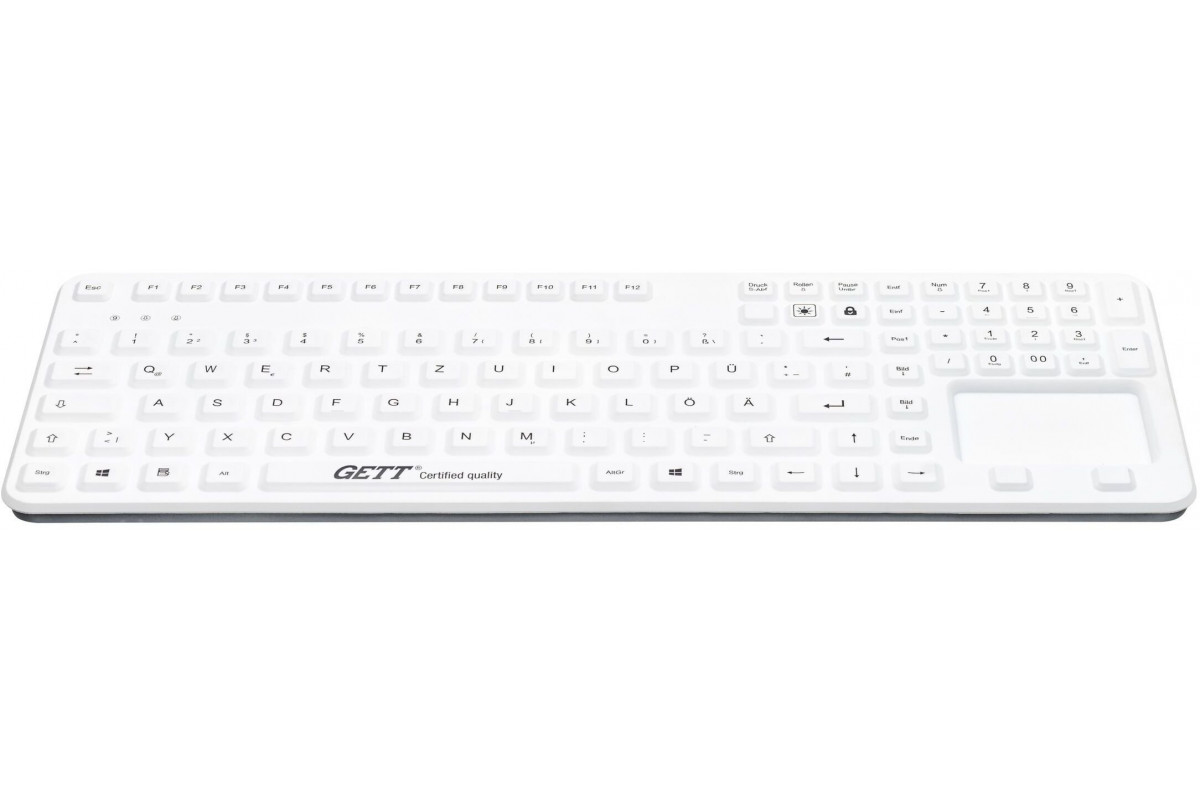 Gett GETT GCQ Cleantype Prime Panel+ Silikonowa klawiatura do zabudowy z podświetleniem, touchpadem i blokiem NUM IP65 USB Kolor: biały Układ: DE
