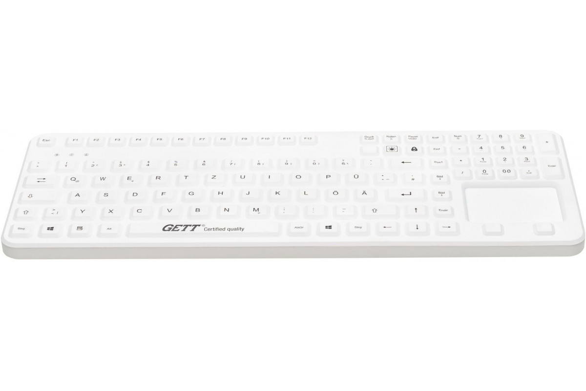 Gett GETT GCQ CleanType Prime Touch+ silikonowa z touchpadem z blokiem numerycznym z magnesami IP65 podświetlane klawisze USB Kolor: biały Układ: CH