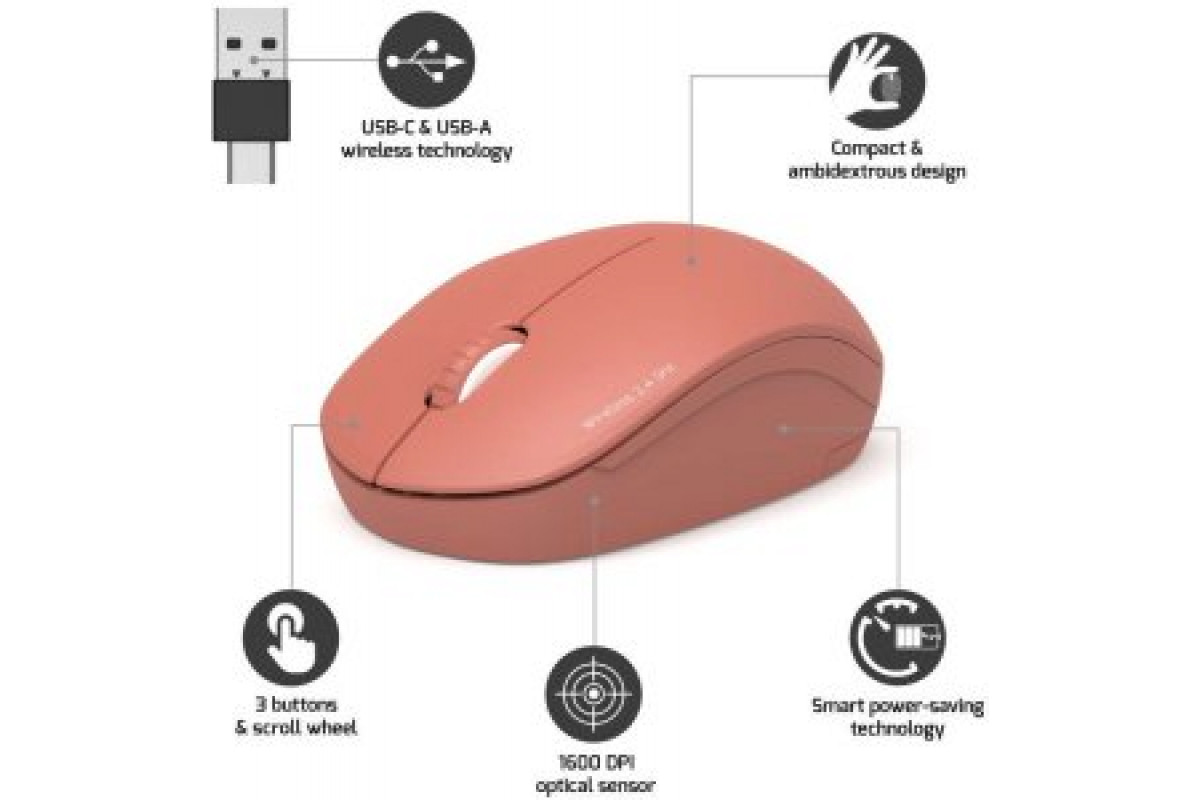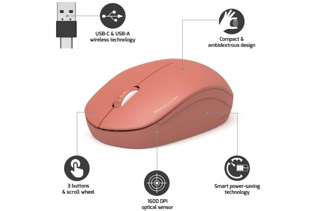 Port Designs 900542, Ambidextrous, Optical, RF Wireless, 1600 DPI, Red