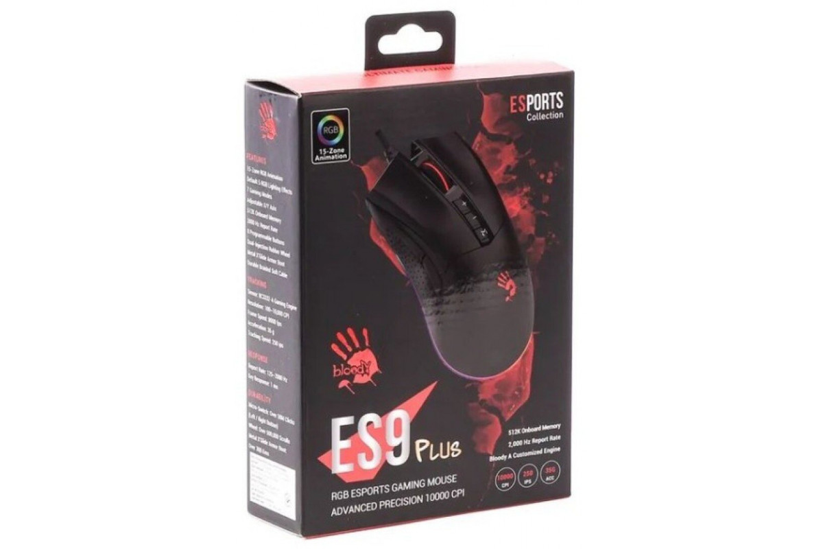 A4Tech A4tech Bloody Esport ES9 Plus podświetlana herní mysz 10000 DPI USB czarny