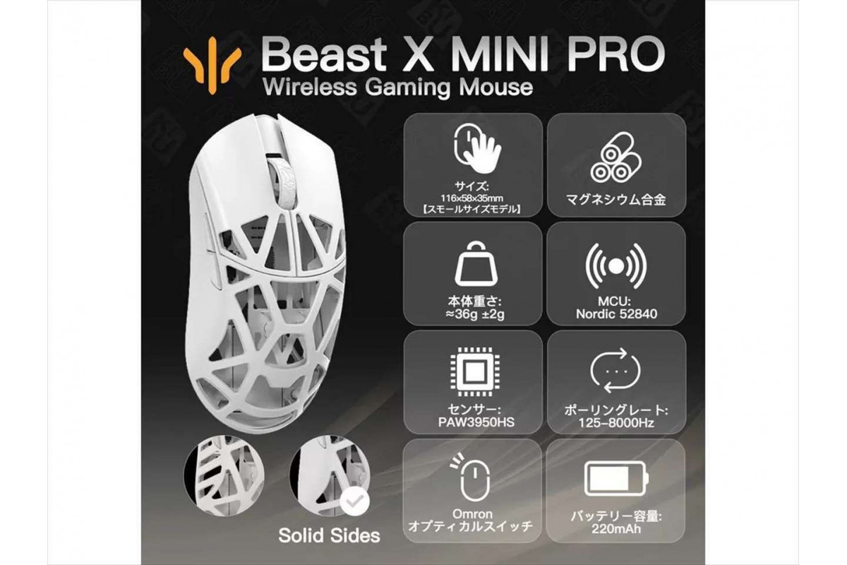 WLMouse Beast X Mini Pro Solid Sides Gaming mysz, Omron Optical Switches - biały
