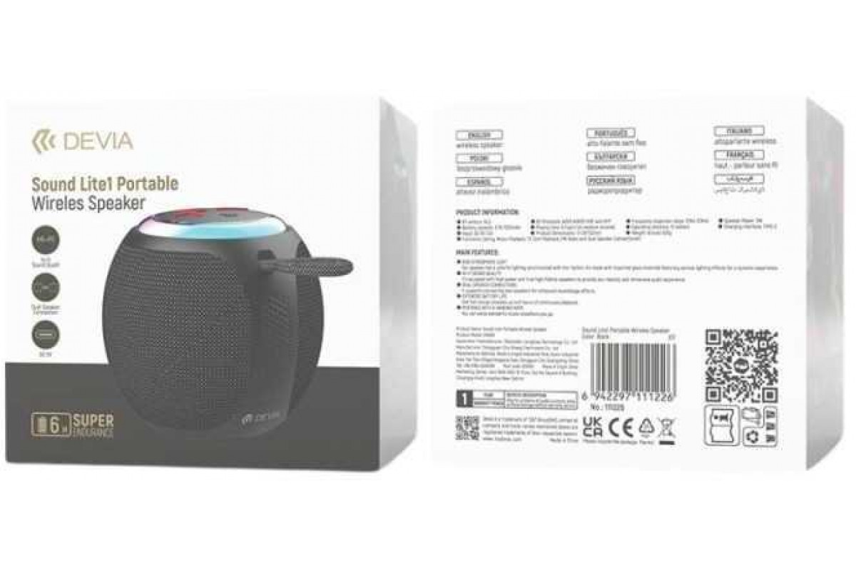 Devia Lite1 głośnik Bluetooth 5W black portable FM TF