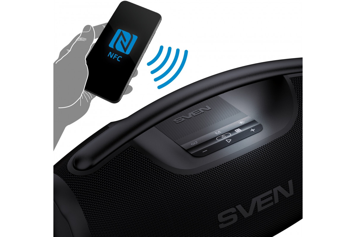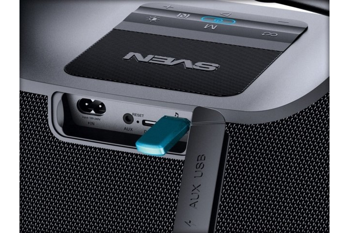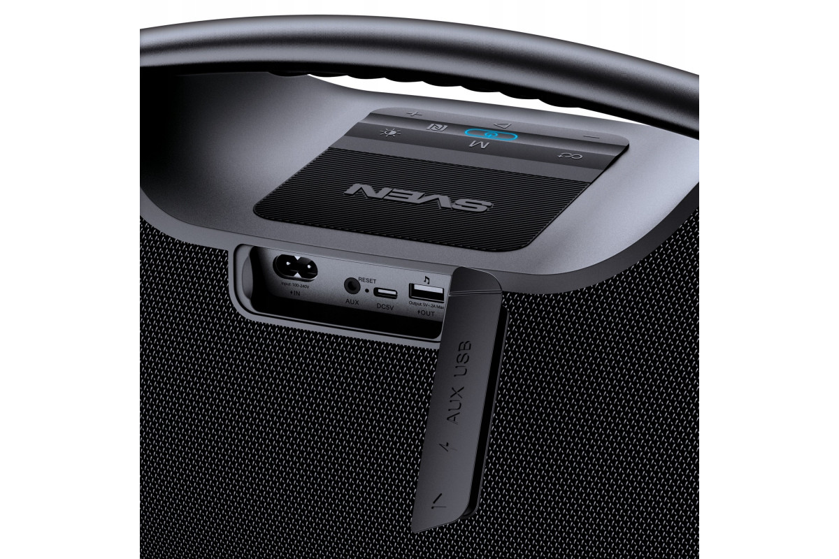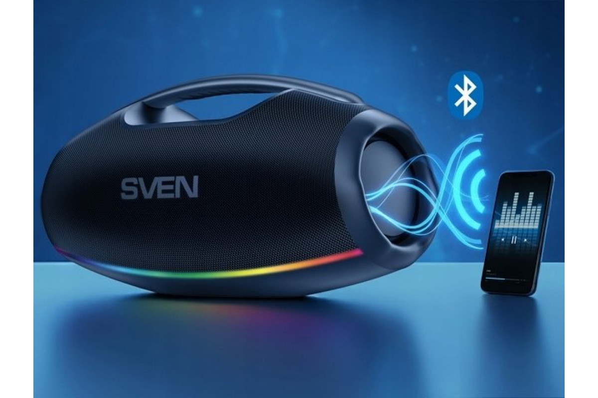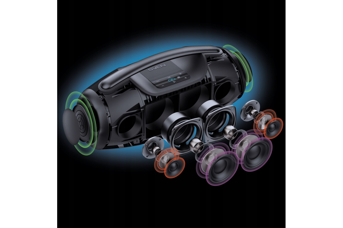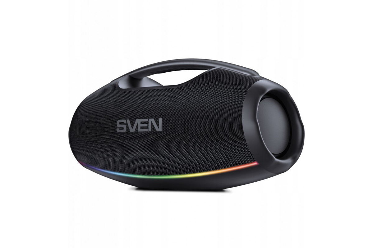 Sven Portable speaker SVEN PS-990, black, power output 180W (RMS), TWS, Bluetooth, RGB backlight, Wodoodporny (IPx7), USB, Lithium battery, Baterija life – aż 16 hours