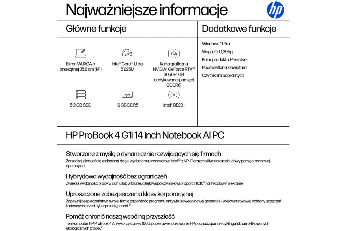 HP ProBook 4 G1i 14 Intel Core Ultra 5 225U 14inch 16GB 512GB W11P 1YW