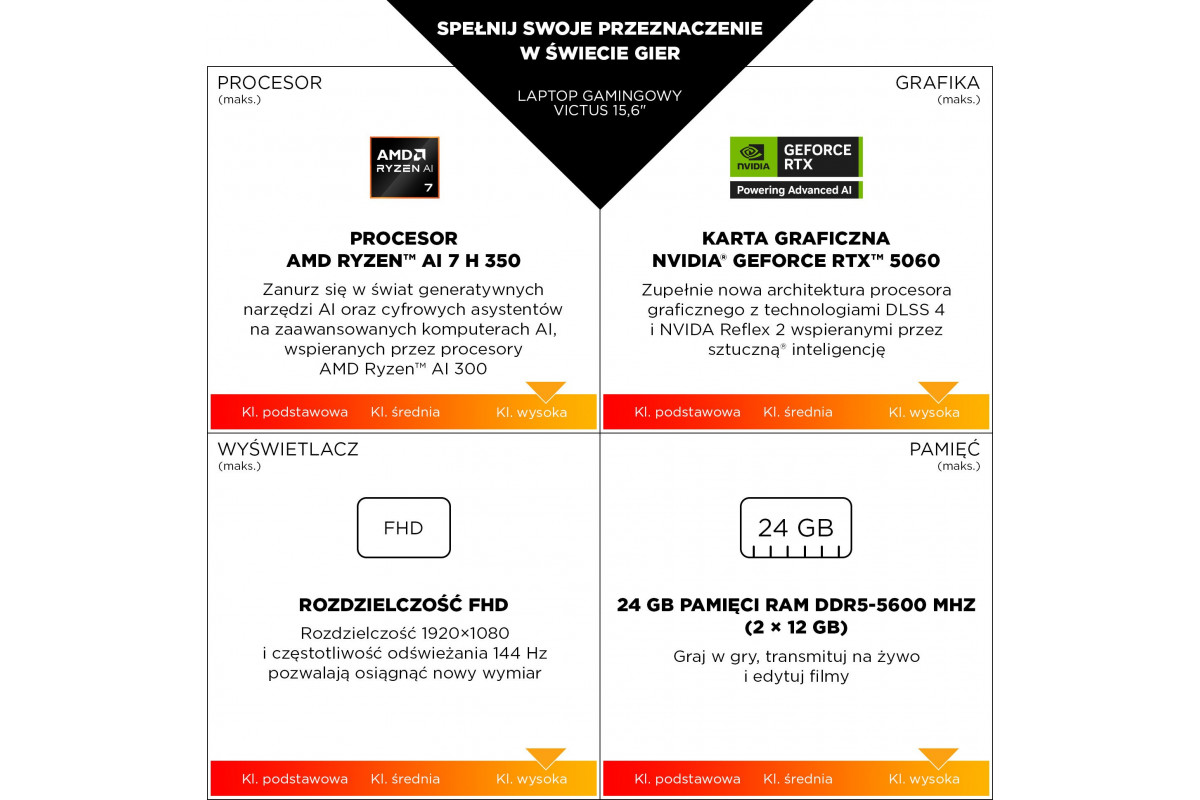 HP Victus Gaming Laptop 15-fb3040nw AMD Ryzen 7 7445H 39,6 cm (15.6") Full HD 16 GB DDR5-SDRAM NVIDIA GeForce RTX 4050 Wi-Fi 6 (802.11ax) Free DOS Czarny
