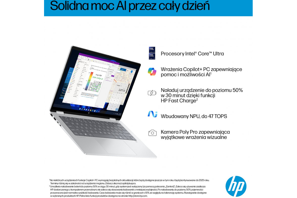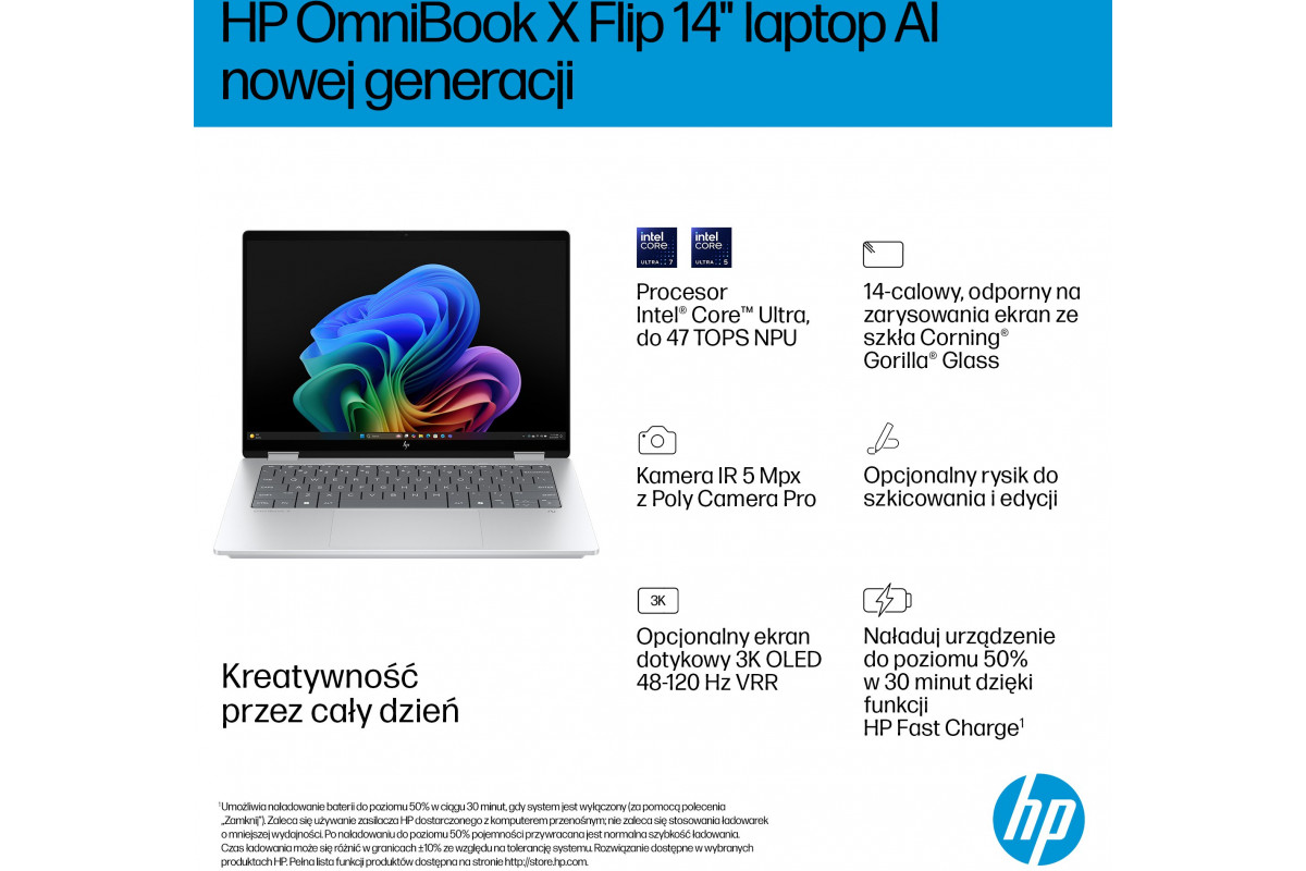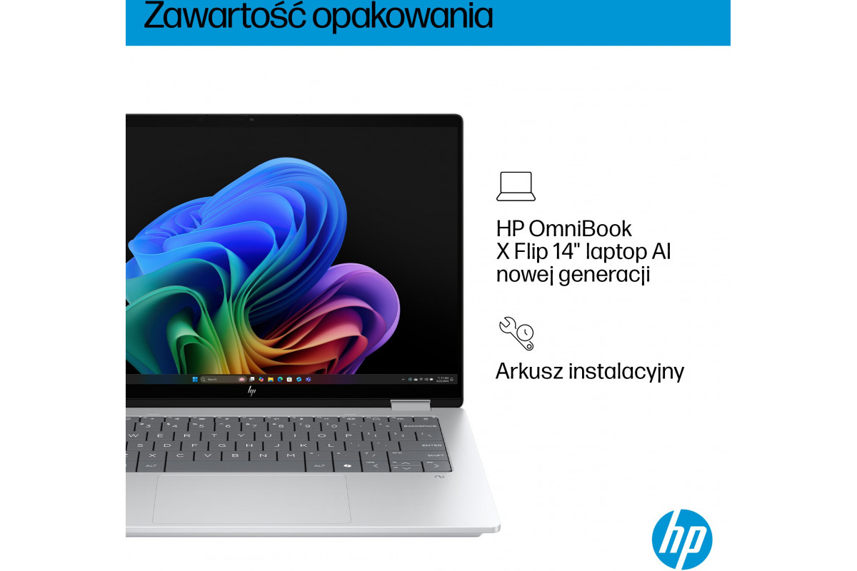 Laptop HP OmniBook X Flip 2-in-1 NG AI 14-fm0002nw - Ultra 5 226V | 14"-3K-OLED-Touch | 16GB | 1TB | Win11Home | Glacier Silver