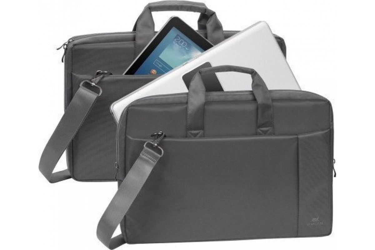 RivaCase RIVACASE TORBA NA LAPTOP 17,3" CENTRAL, SZARA, Z POLIESTRU, Z KIESZENIAMI NA TABLET, SMARTFON, DOKUMENTY I AKCESORIA