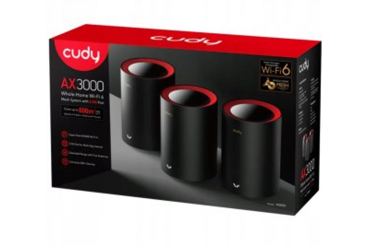 Cudy DOMOWY SYSTEM WI-FI MESH M3000(3-PACK)-BLACK Wi-Fi 6 2.4 GHz, 5 GHz, 574 Mb/s + 2402 Mb/s CUDY