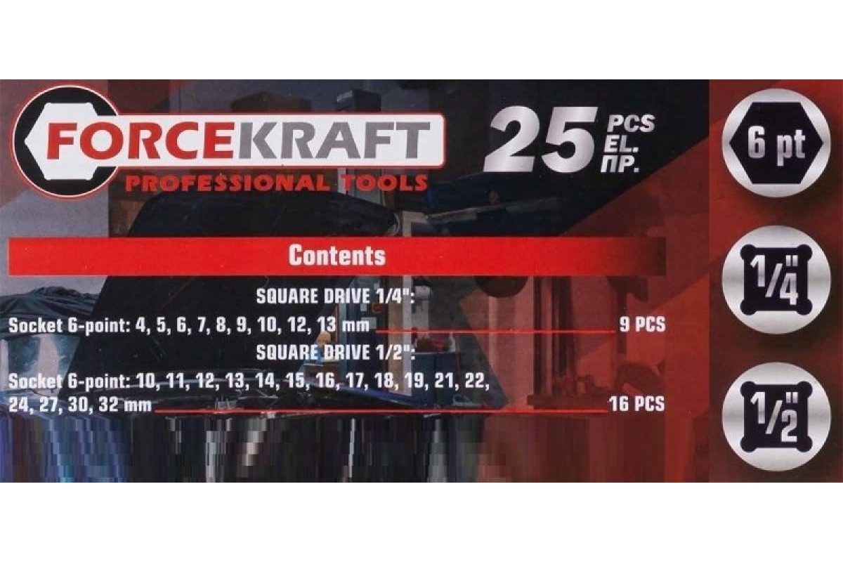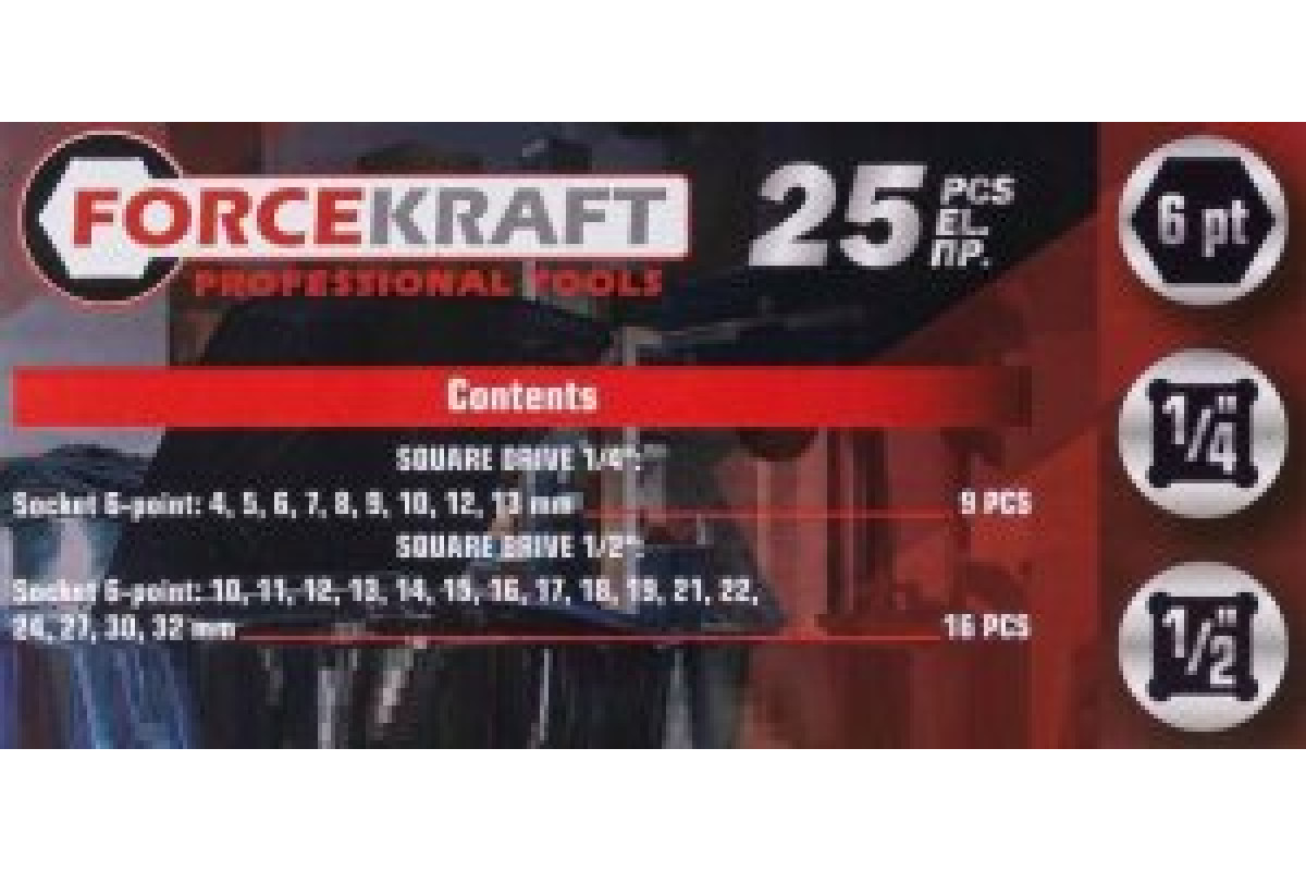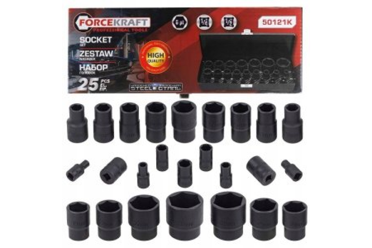 Zestaw nasadek 1/2" i 1/4" 25el. (4-32mm) (6-kątnych)
