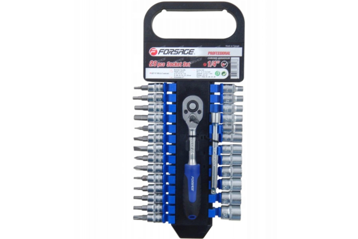 Zestaw nasadek i bitów 1/4" z grzechotką z plastikowym uchwytem 27el. (6-kątnych.) (4-14mm)
