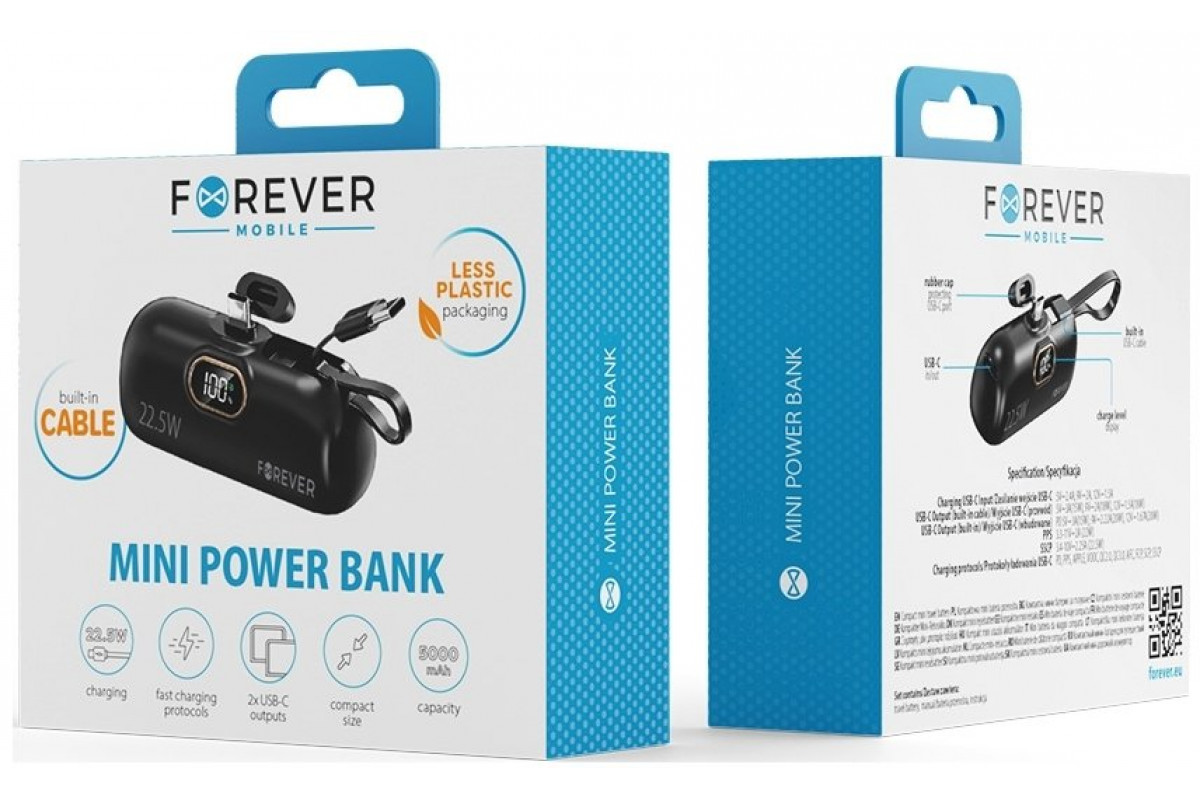 Forever mini MTB-100 22.5W 5000 mAh USB C Black