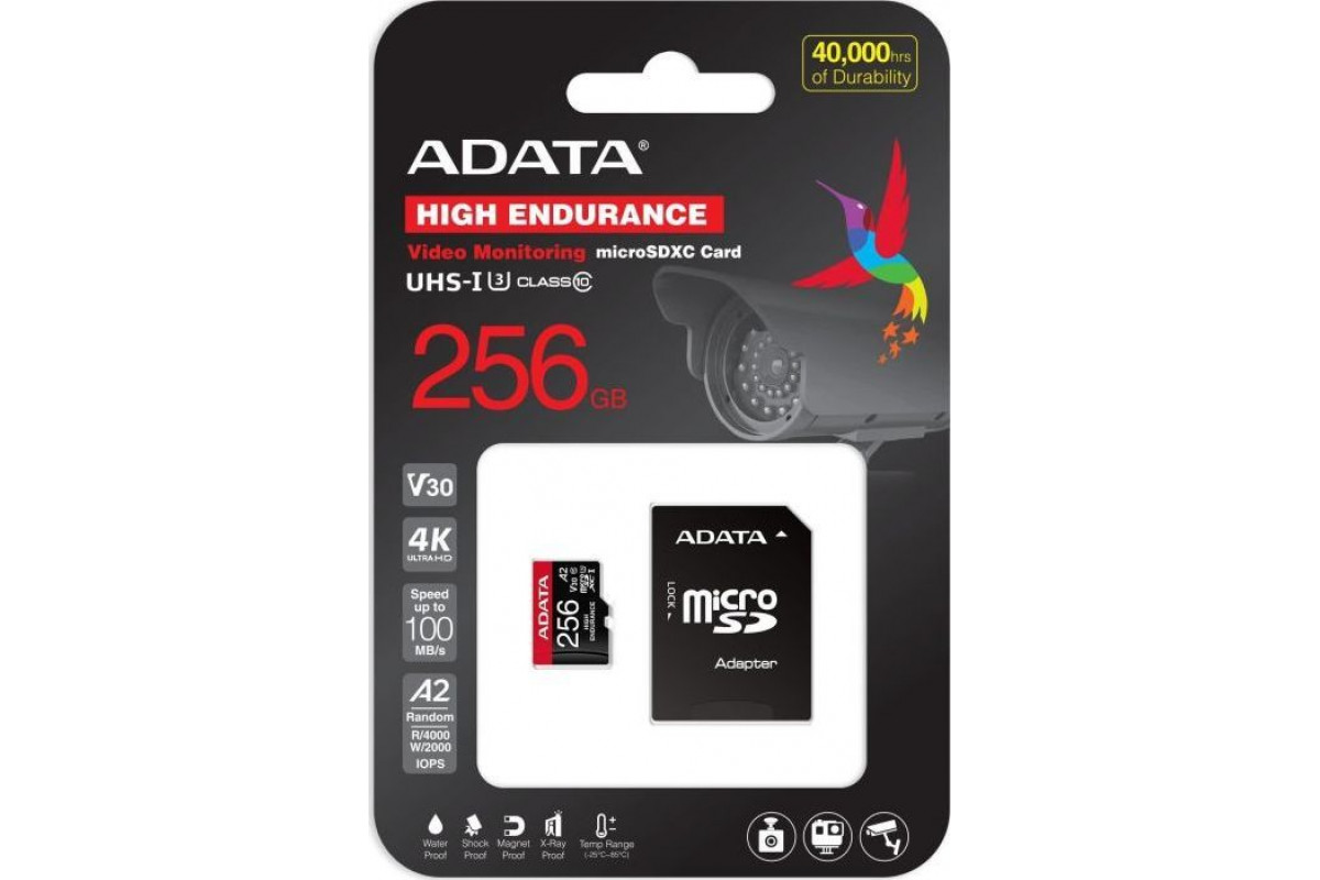 SD ADATA High Endurance MicroSDXC 256 GB Class 10 UHS-I/U3 A2 V30 (AUSDX256GUI3V30SHA2-RA1)
