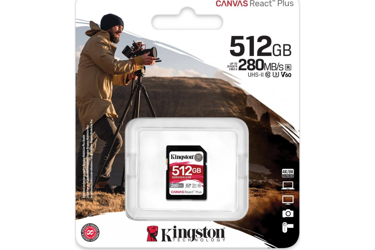 SD Kingston Canvas React Plus SDXC 512 GB Class 10 UHS-II/U3 V60 (SDR2V6/512GB)