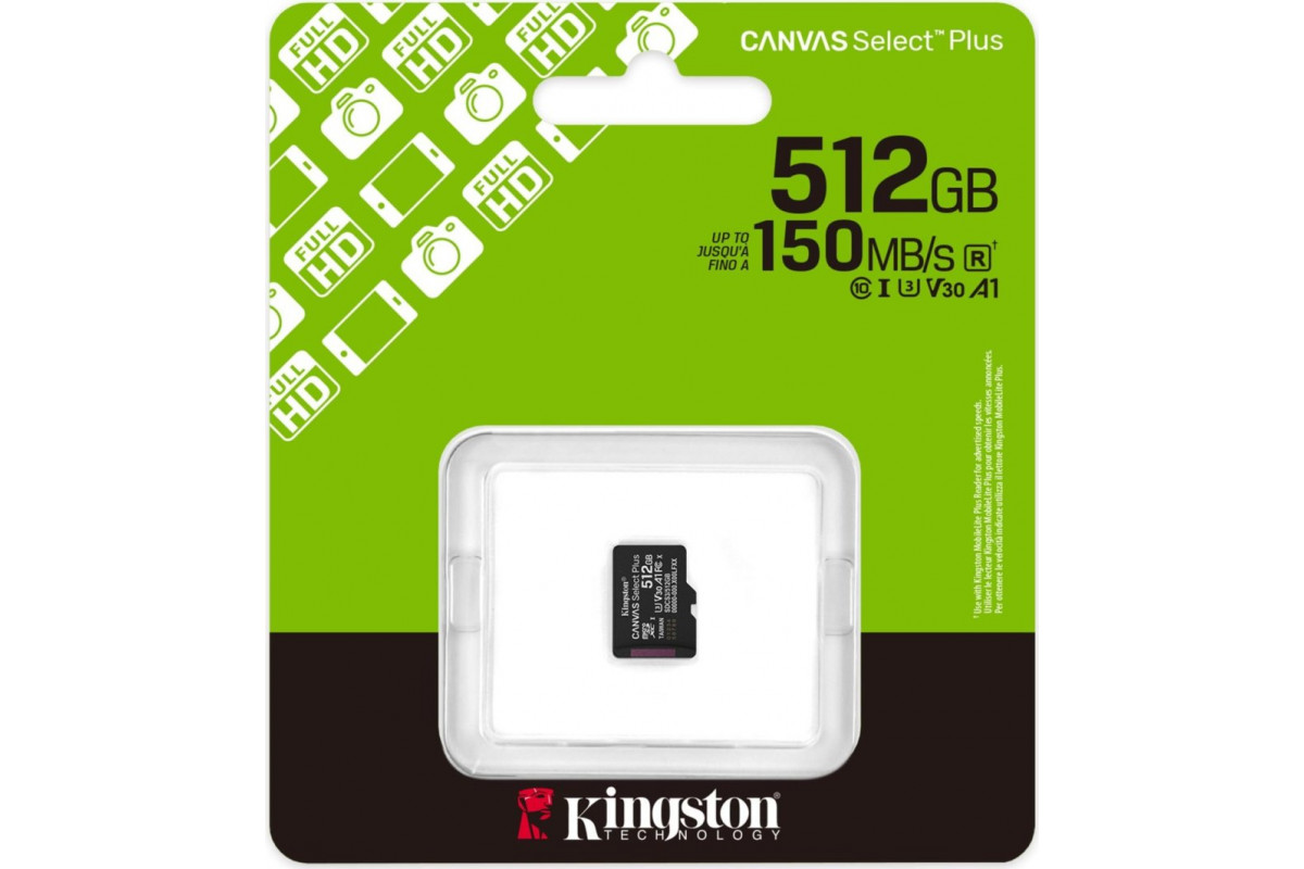 SD Kingston Canvas Select Plus MicroSDXC 512 GB Class 10 UHS-I/U3 A1 V30 (SDCS3/512GBSP)