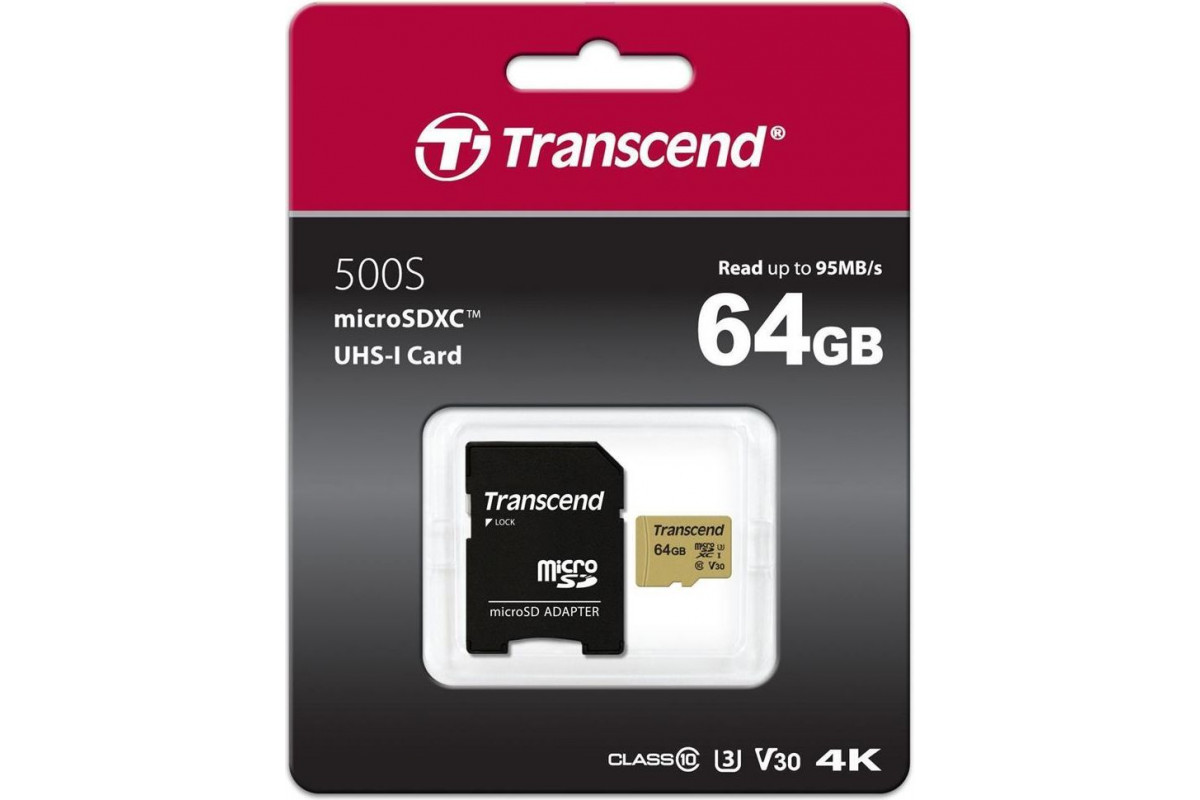 SD Transcend 500S MicroSDXC 64 GB Class 10 UHS-I/U3 V30 (TS64GUSD500S)