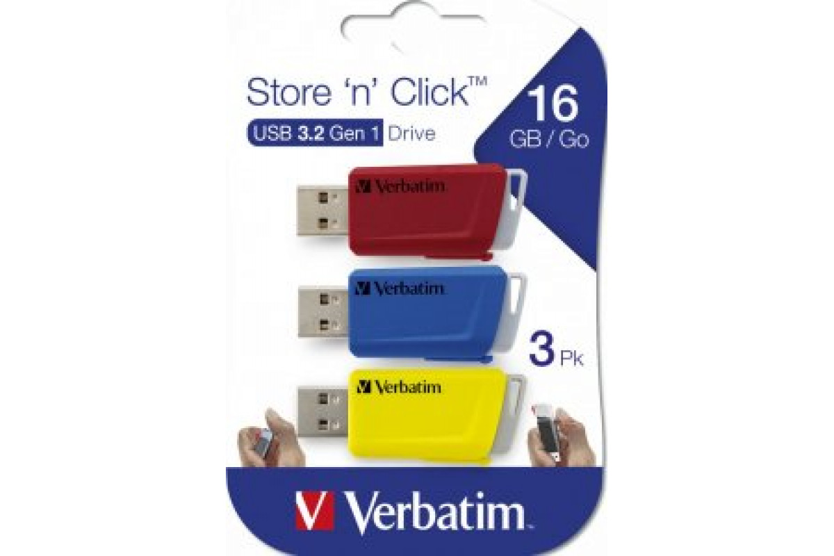 Pendrive Verbatim Store 'n' Click (3 szt.), 16 GB (49306)