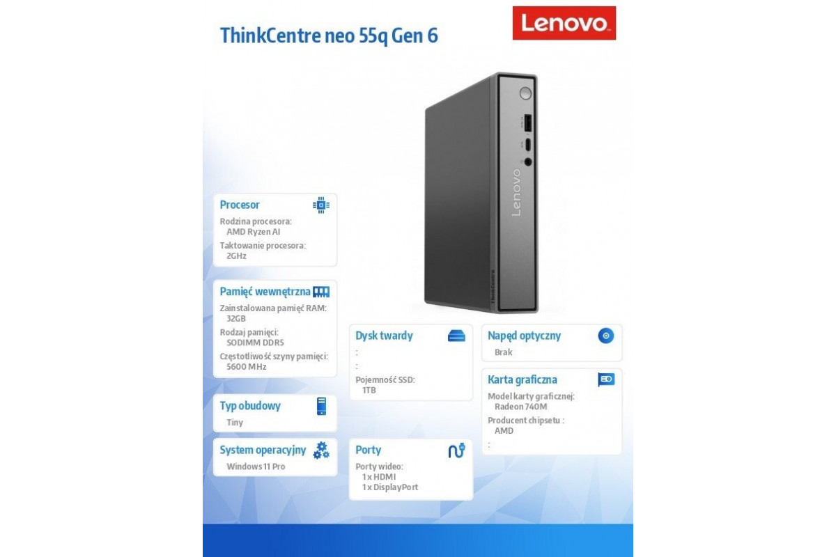 Komputer Lenovo ThinkCentre neo 55q Gen 6 Ryzen AI 5 350 / 32 GB / 1 TB / Windows 11 Pro (13GT000QPB)
