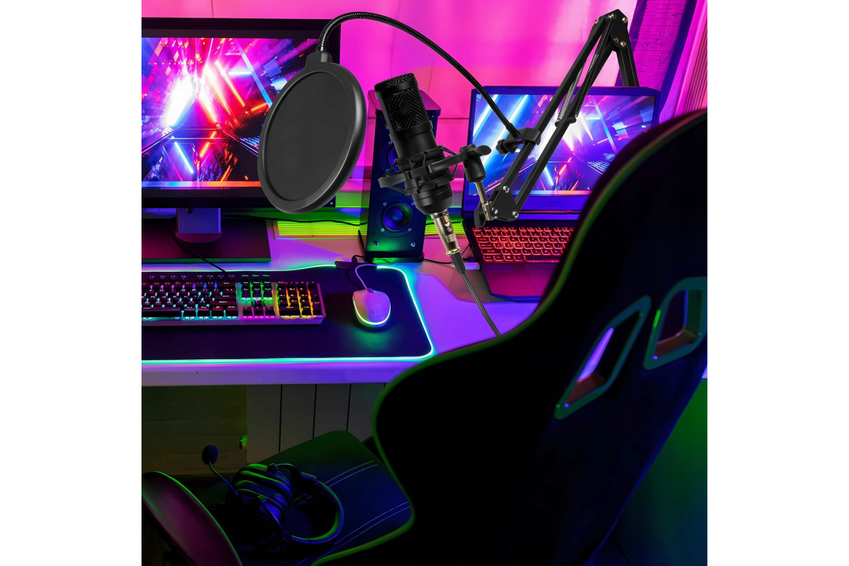 Retoo MIKROFON STUDYJNY USB JACK GAMINGOWY STATYW POP FILTR