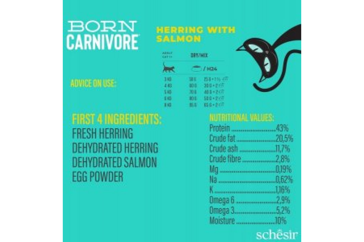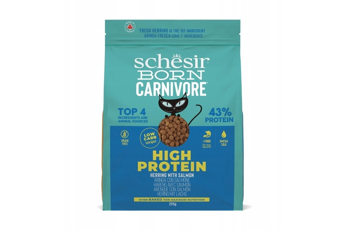 Schesir Born Carnivore, karma sucha, dla kotów adults, śledź i łosoś, 255 g, worek