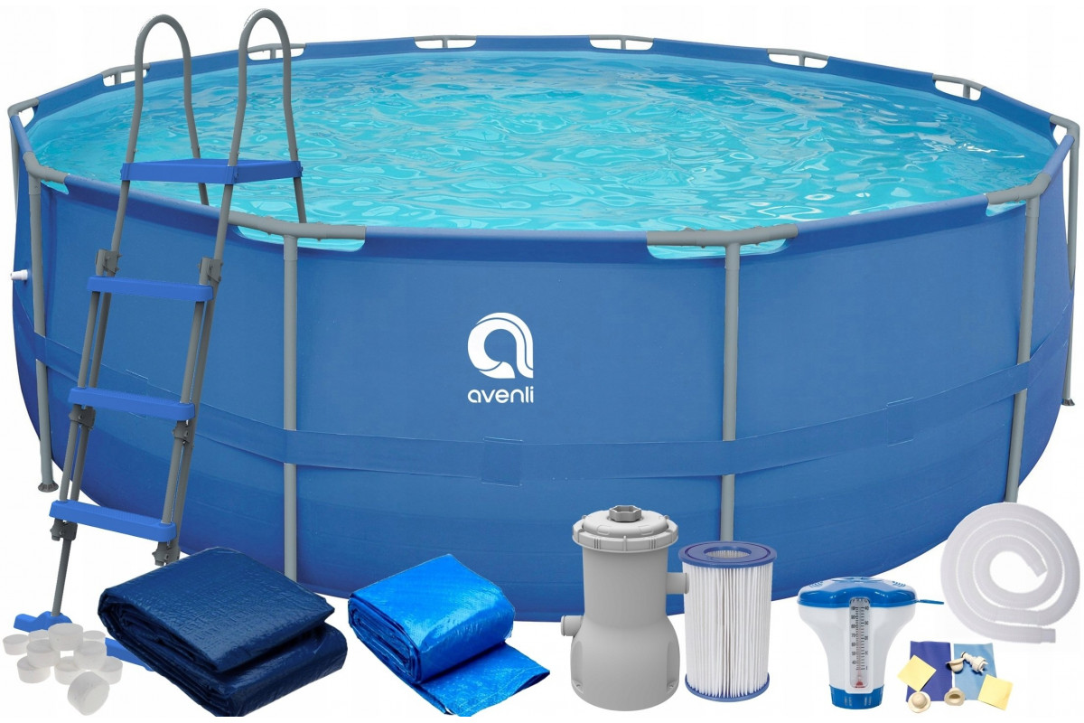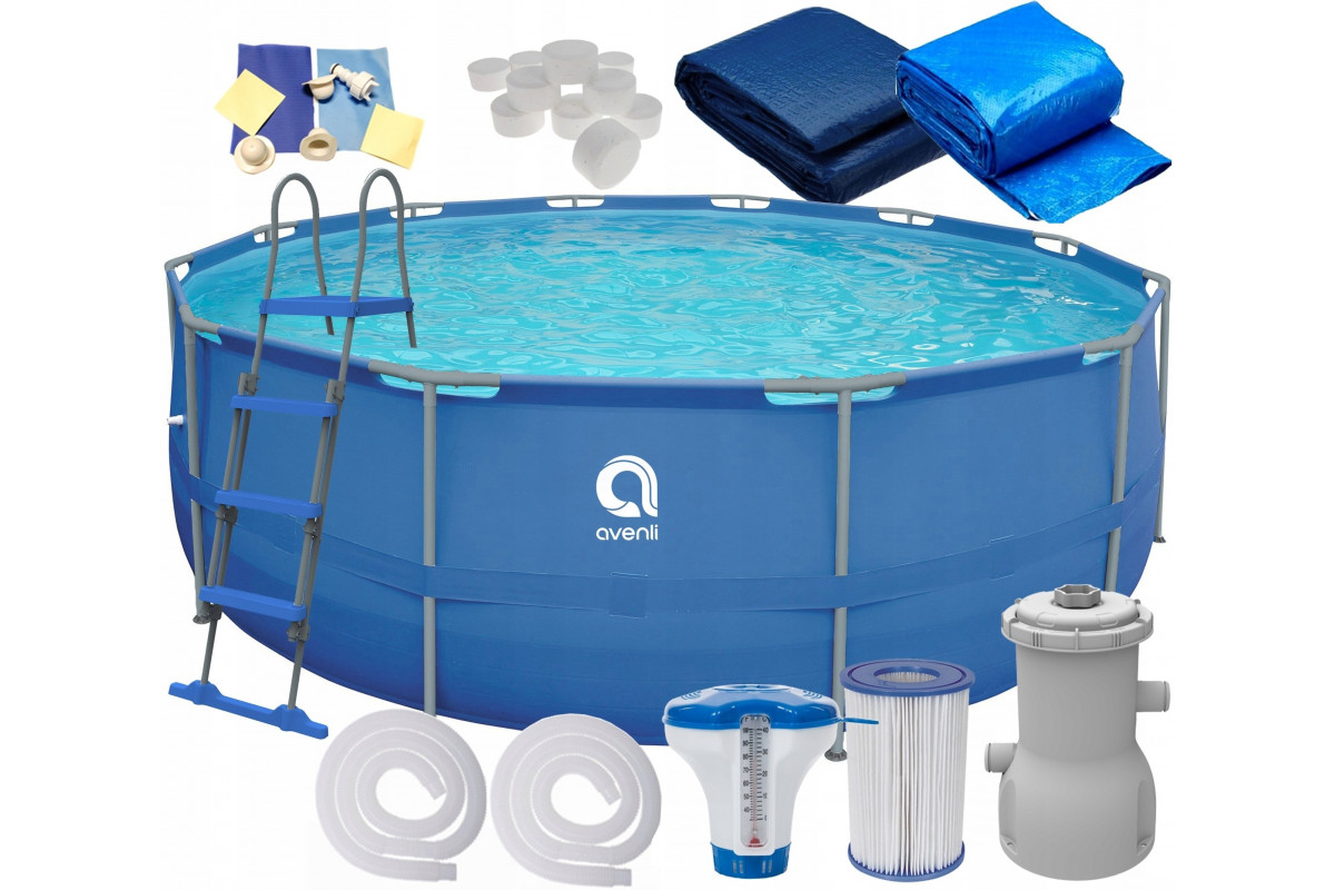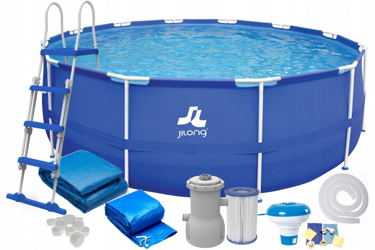 Enero Swimming pool rack oval with pump 450x122cm with pump drabiną i podłożem (17802EU)