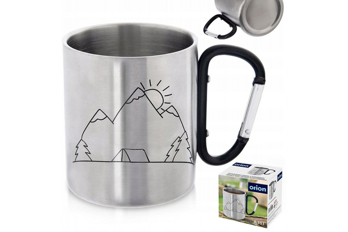 Mug Turystyczny Thermal Stalowy z Karabińczykiem Prezent ORION 350 ml
