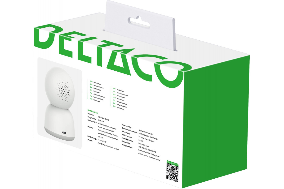 Smart WiFi camera DELTACO with motorized pan & tilt, white / SH-IPC16 / 1902918