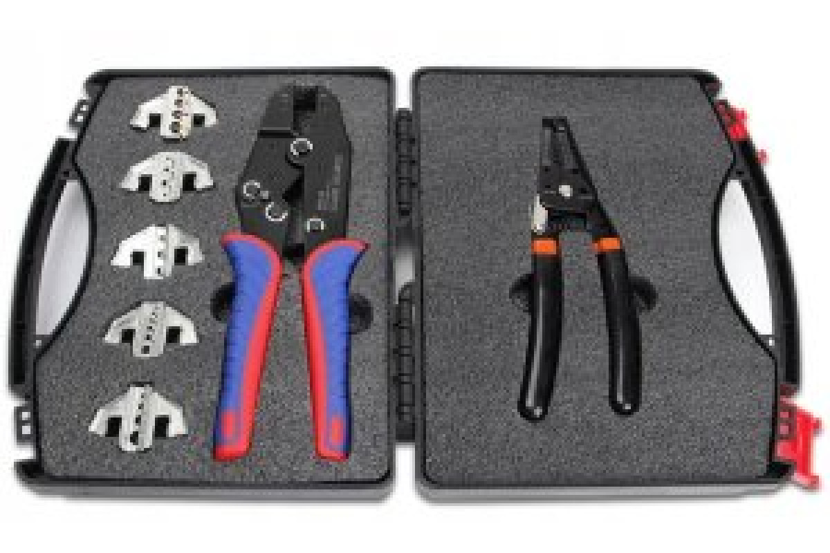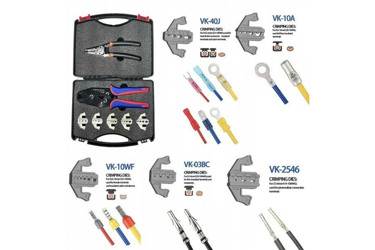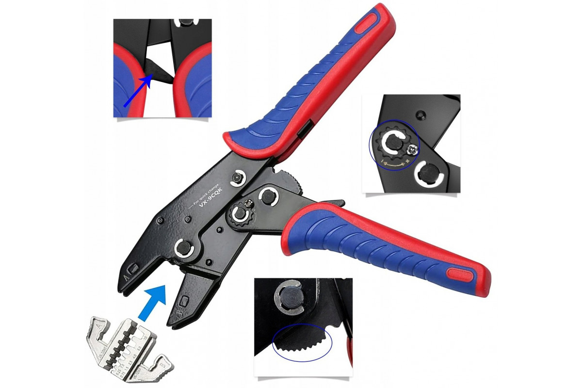 Zestaw zaciskarka z wymiennymi beznarzędziowo szczękami + cęgi