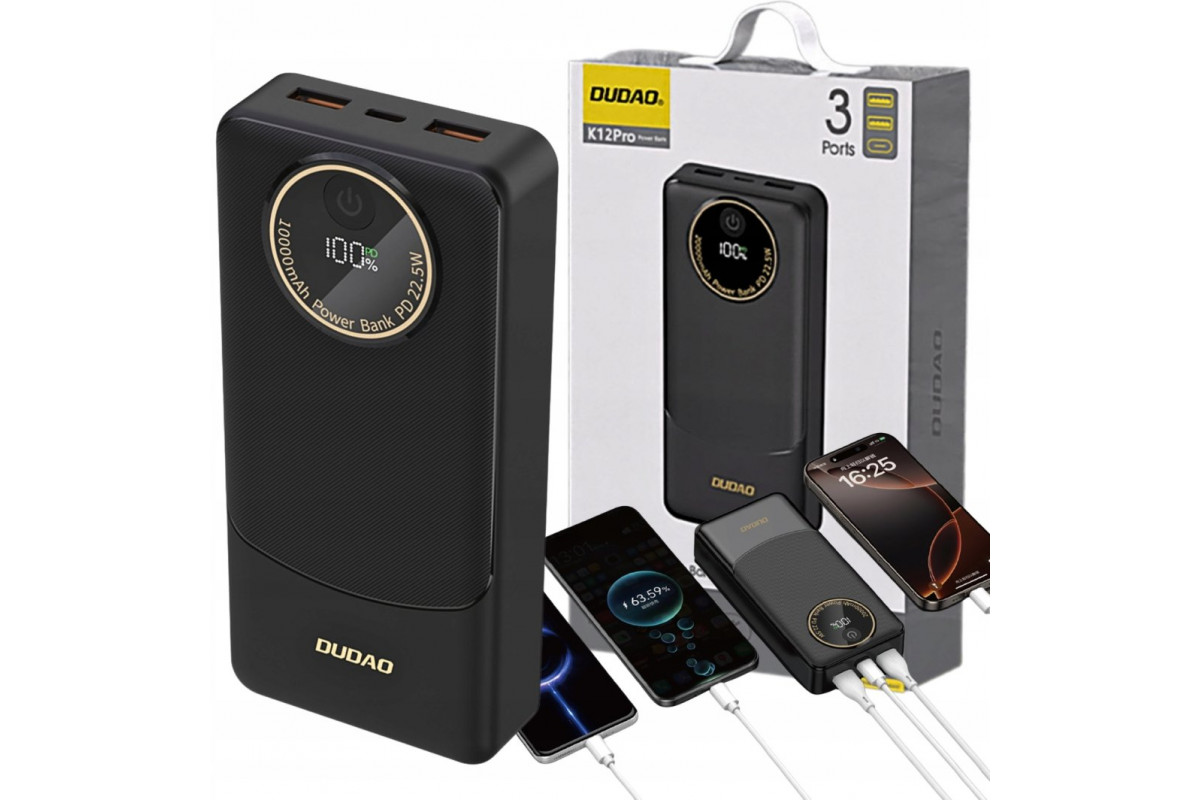 Dudao Dudao K12Pro 22,5W PD 20000mAh USB-A, USB-C - Black