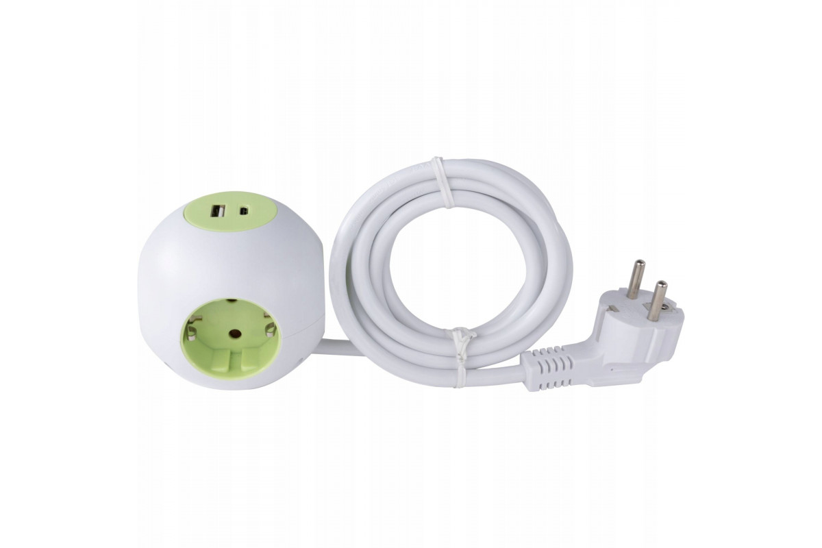 REV PowerGlobe Steckdosenwürfel 4-fach USB weiß-gr.1,4m015408112