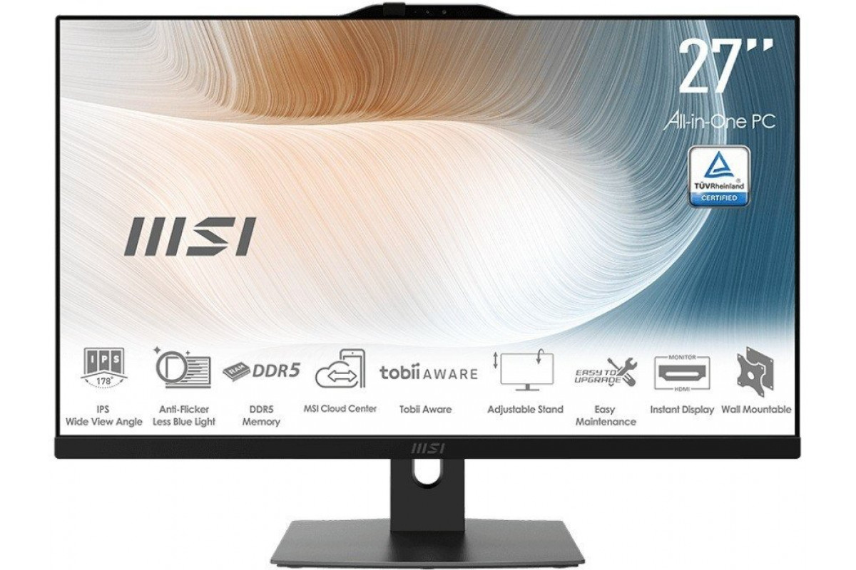 MSI AIO Modern AM272P 1M-1261EU Core 5-120U 27 IPS LED FHD Non-Touch Anti-Glare 16GB SSD512GB M.2 AX211 WiFi 6E Windows 11 Pro Black
